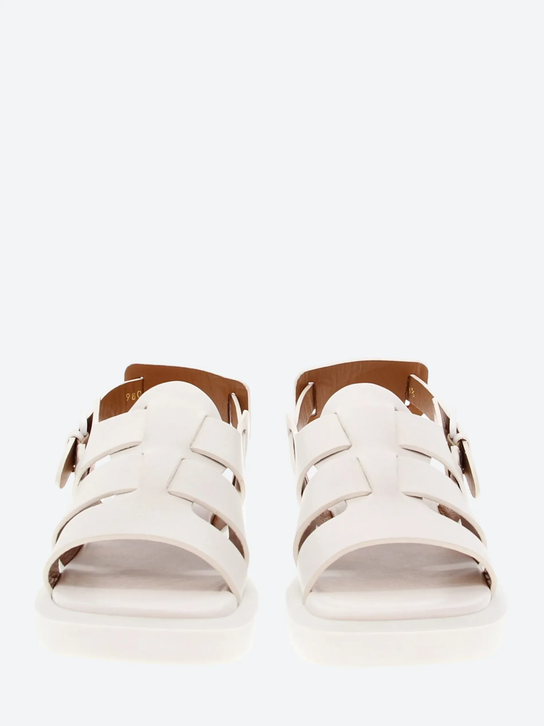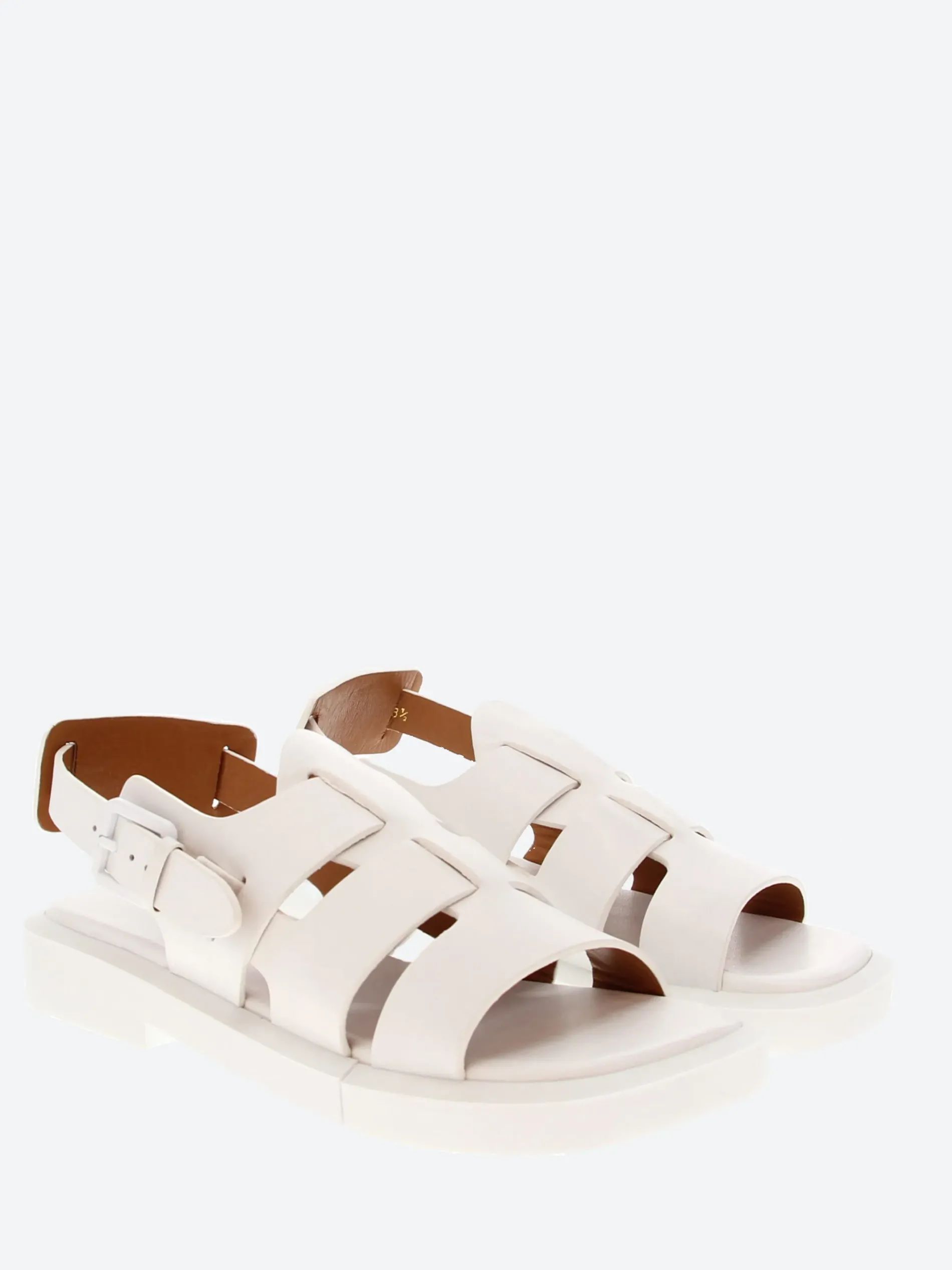 Clergerie Ramona sandal adorns the foot with an architectural interlacing of straps inspired by sailor’s sandals. The luxurious leatherwork finish of the cutouts hides the edge of the leather of the straps in a saddlery spirit.