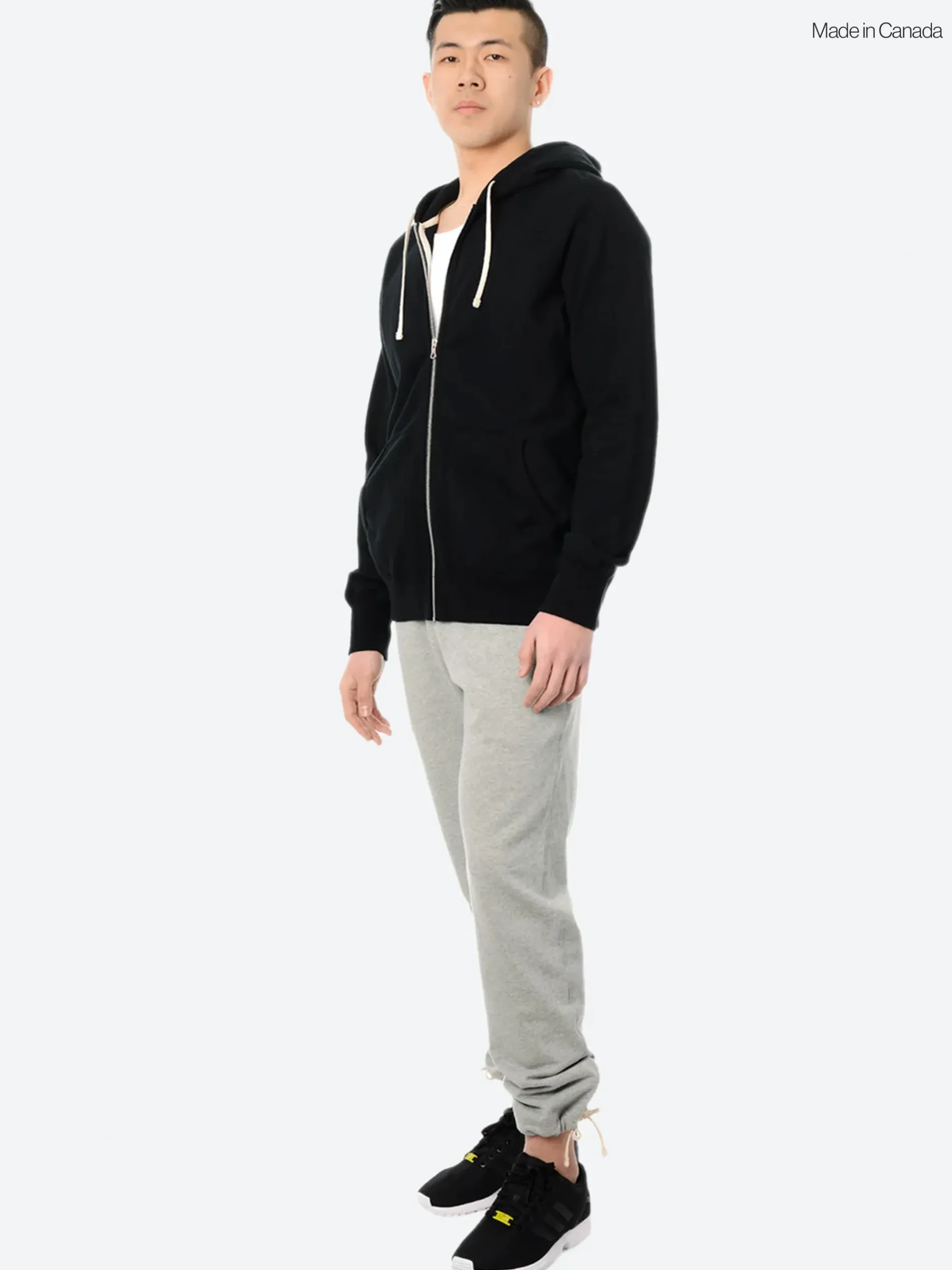Reigning Champ’s Full Zip Hoodie is handcrafted in their signature mid-weight terry. Features drawstring cord, reverse flatlocked seams, front hand pouches, ultra-soft loop knit inner lining, banded cuffs, hem and side seams. Another basic staple adhering to the expected details and quality by the Canadian brand.