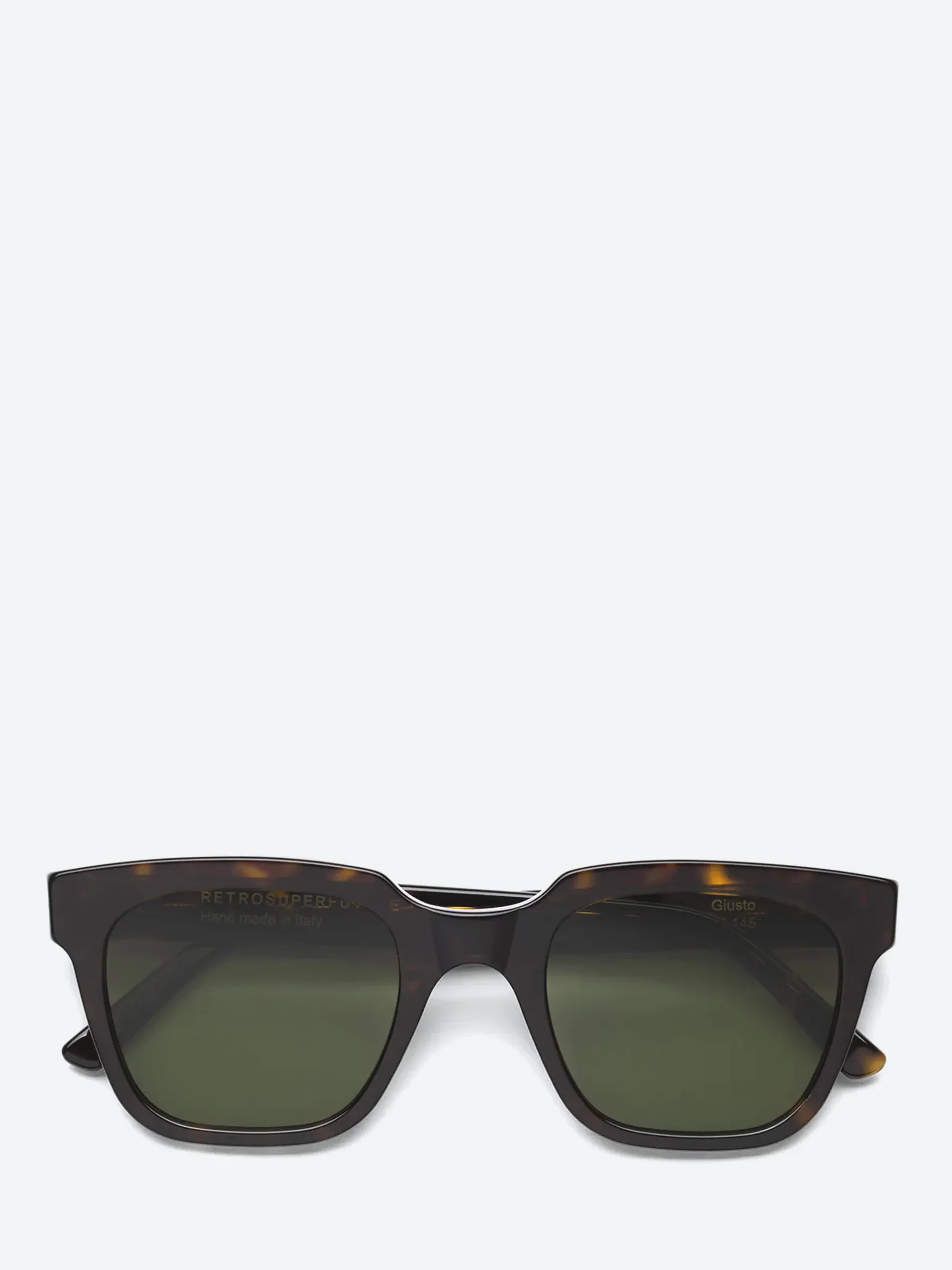 Giusto is an essential frame characterized by a squared profile and low nose-bridge. A sharp reinterpretation of iconic 1950s, Giusto features thick and sturdy acetate rims and wide geometric lenses.
