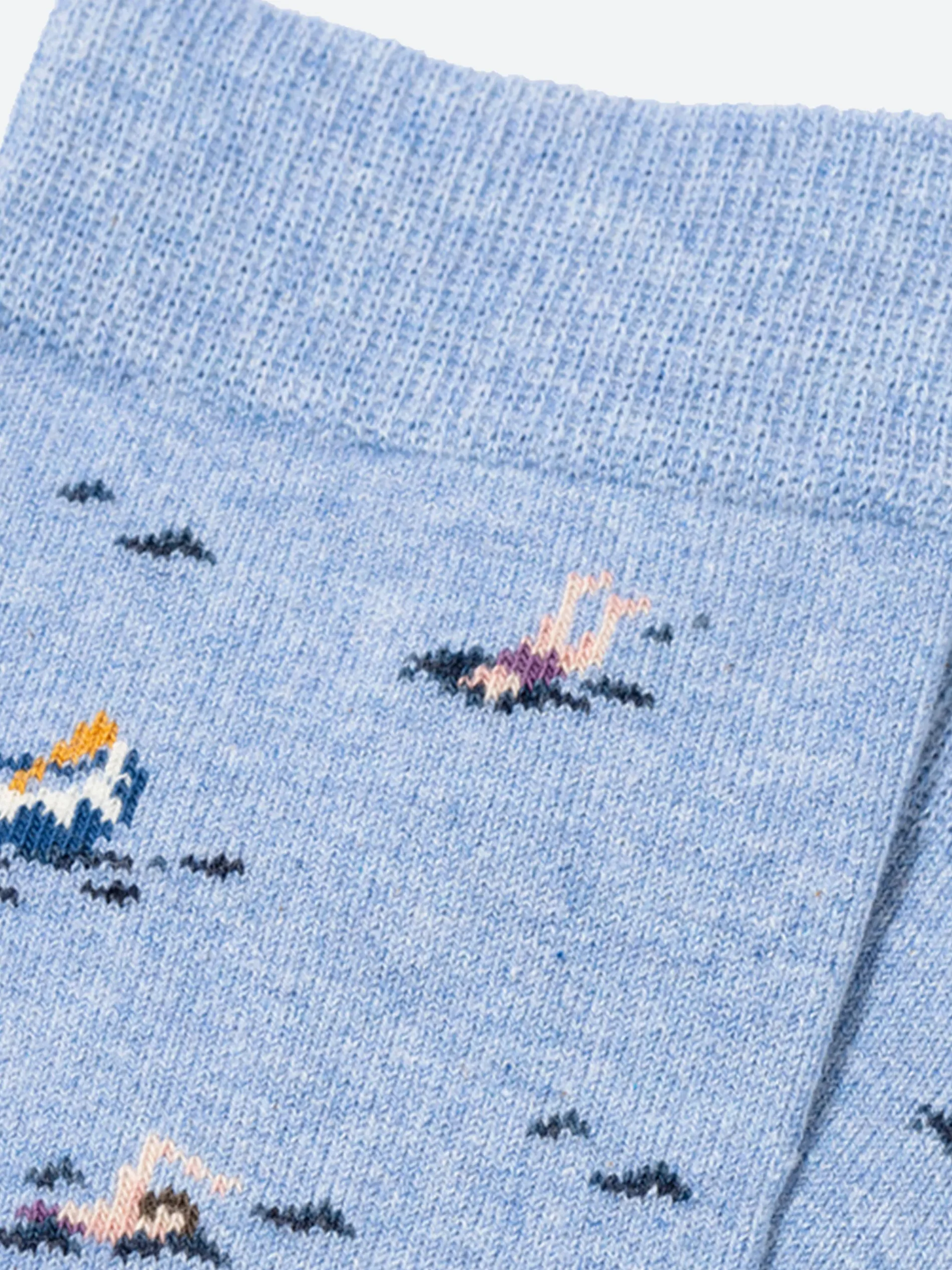 A stroll on the Great Lakes of Canada: these cotton socks feature designs of canoes, swimmers and flying fish.