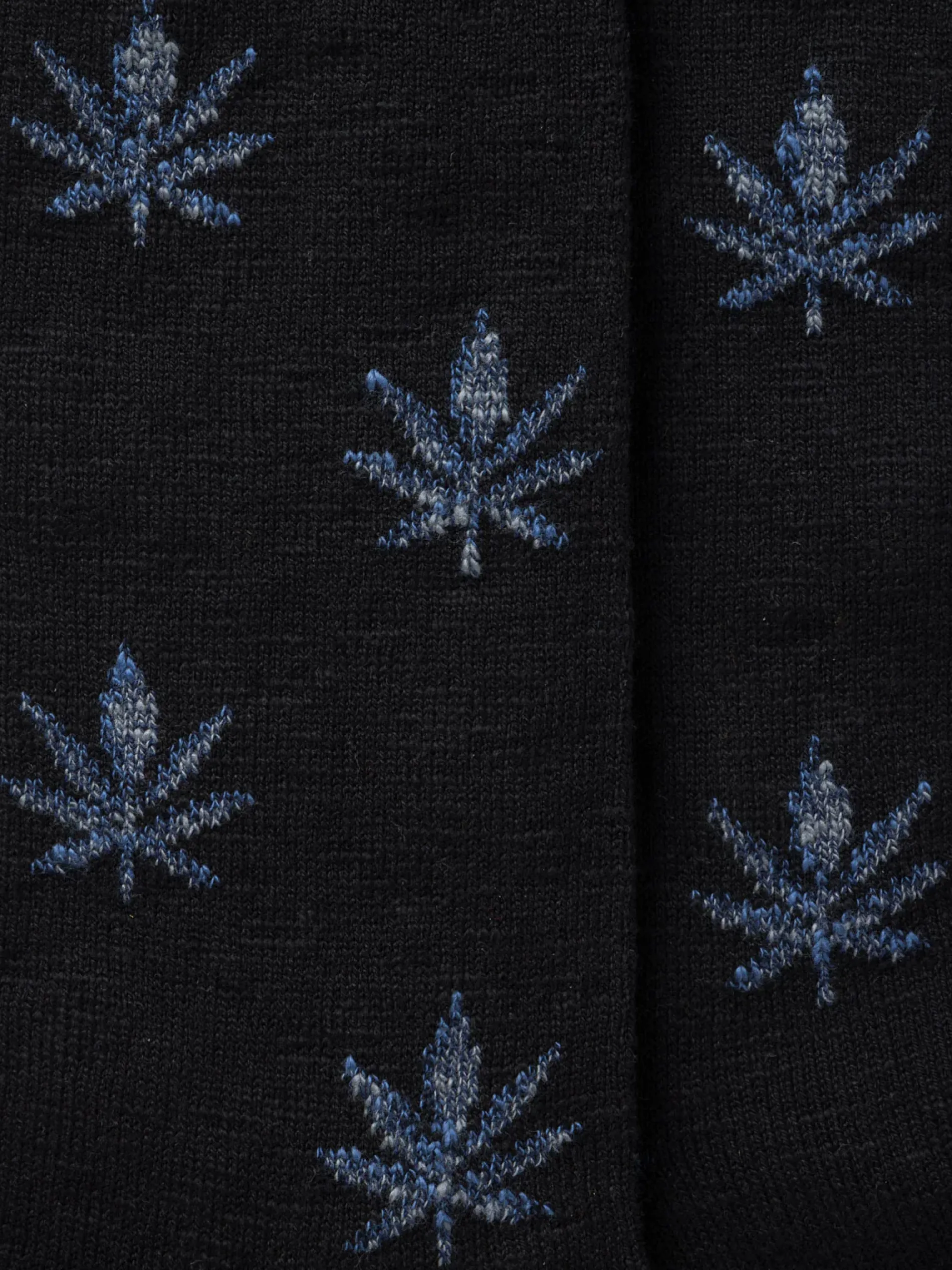Relaxation, comfort, and a touch of provocation with these patterned socks. A jacquard of cannabis leaves covers this slub cotton model.