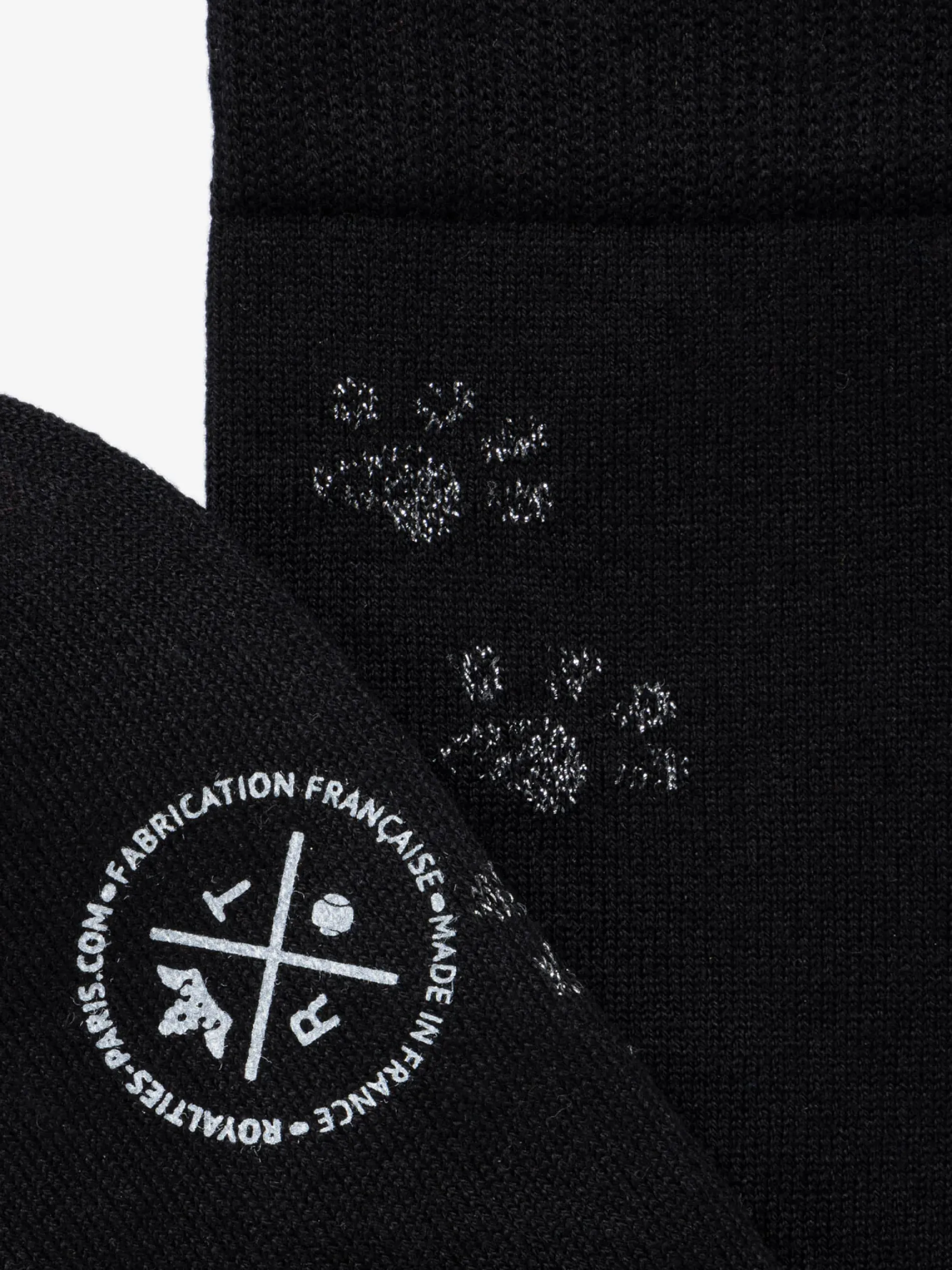 These jacquard socks evoke the traces left by the paws of a cat. The contrast between the matte cotton yarn and lurex shimmer of the pawprints gives this design its playful subtlety.