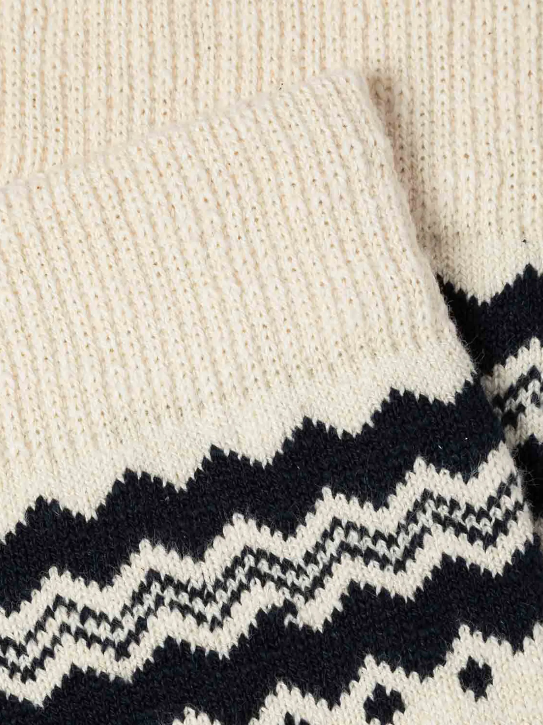 These jacquard-knit socks celebrate the winter season with their cheerful pattern of snowmen, pine trees, and St. Bernard dogs.