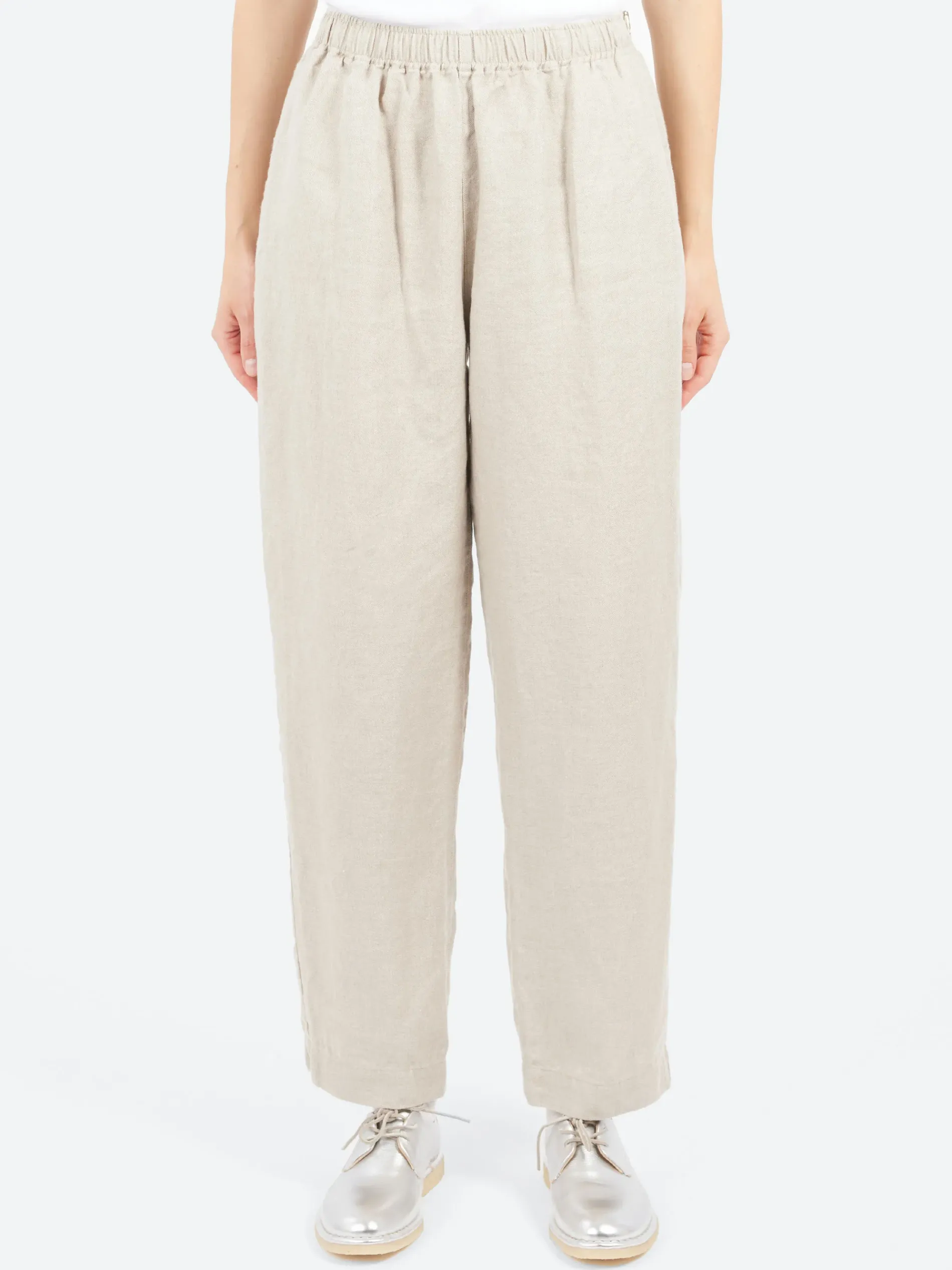 The Sarahwear pants feature a relaxed balloon silhouette, offering both style and comfort. The waist is fully elastic and can be adjusted with an internal drawcord for a customizable fit. Designed with convenience in mind, they include side seam pockets and two patch pockets at the back. The tapered leg adds a modern touch, making these pants a versatile and easy-to-wear option for everyday looks.
