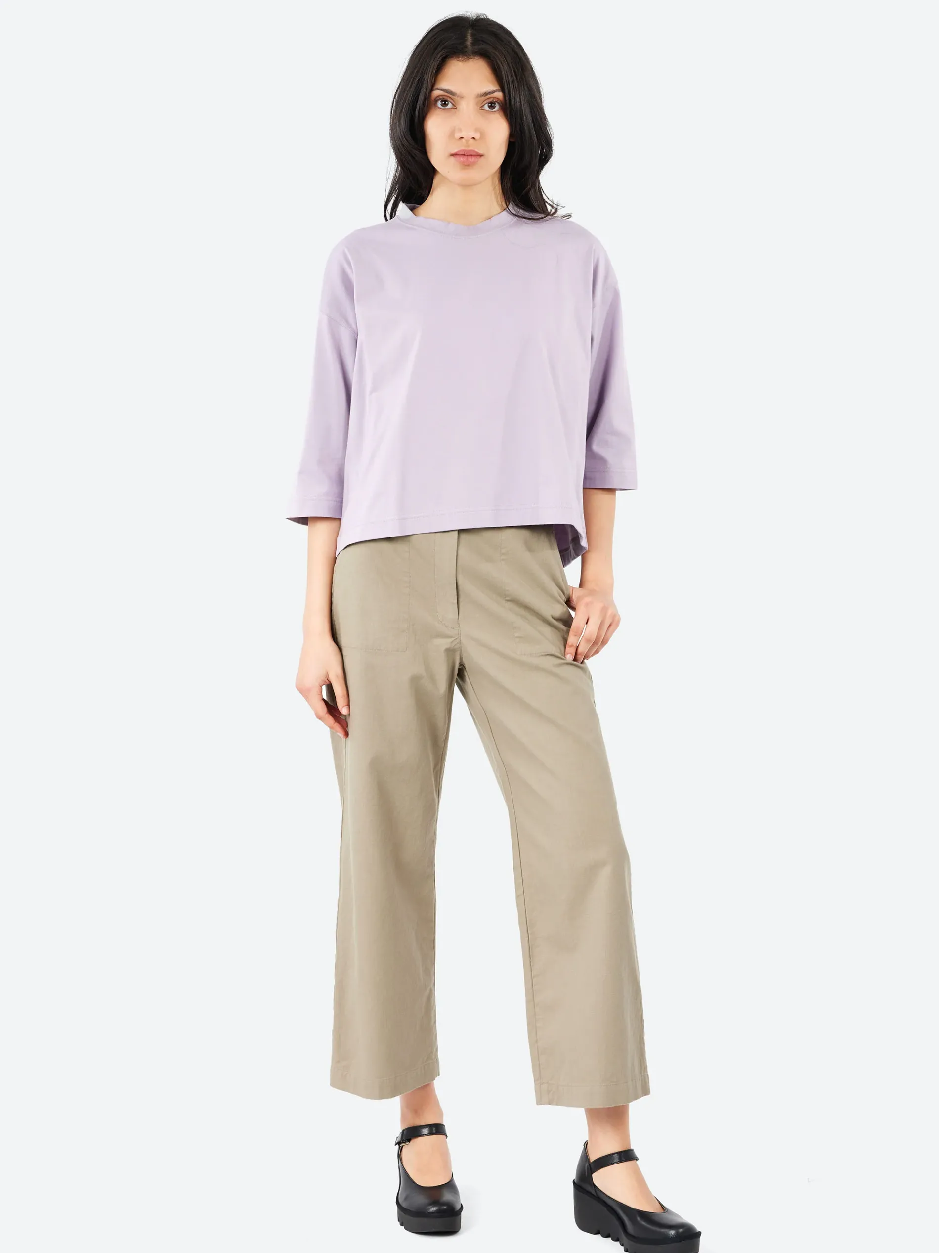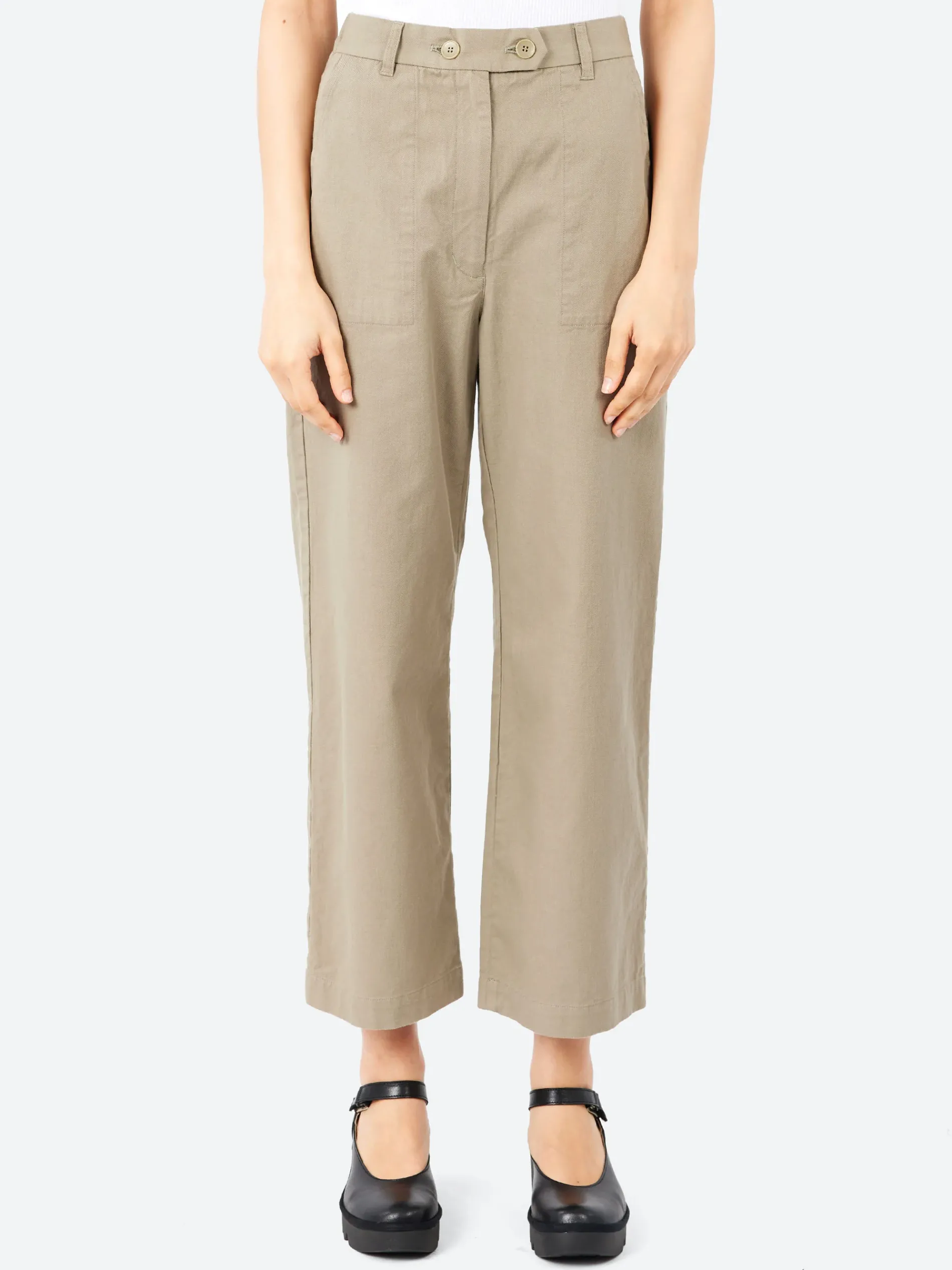 The Carole Pant is crafted from a high twisted twill, a crisp durable fabric with strong thread density that maintains softness.