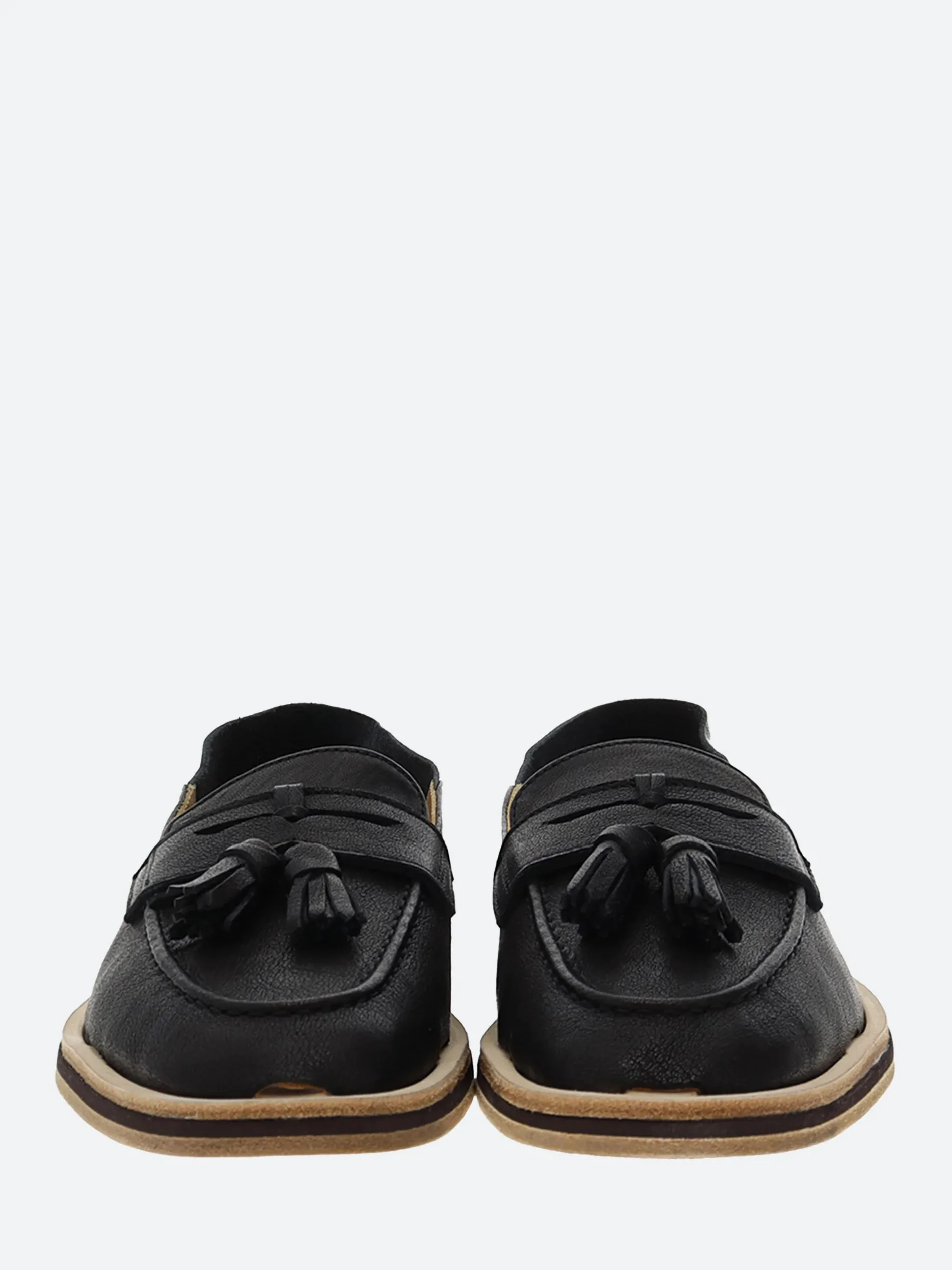Handsewn loafers in brush off cow skin, calf lining and handmade leather outsole with anti-slip rubber island.