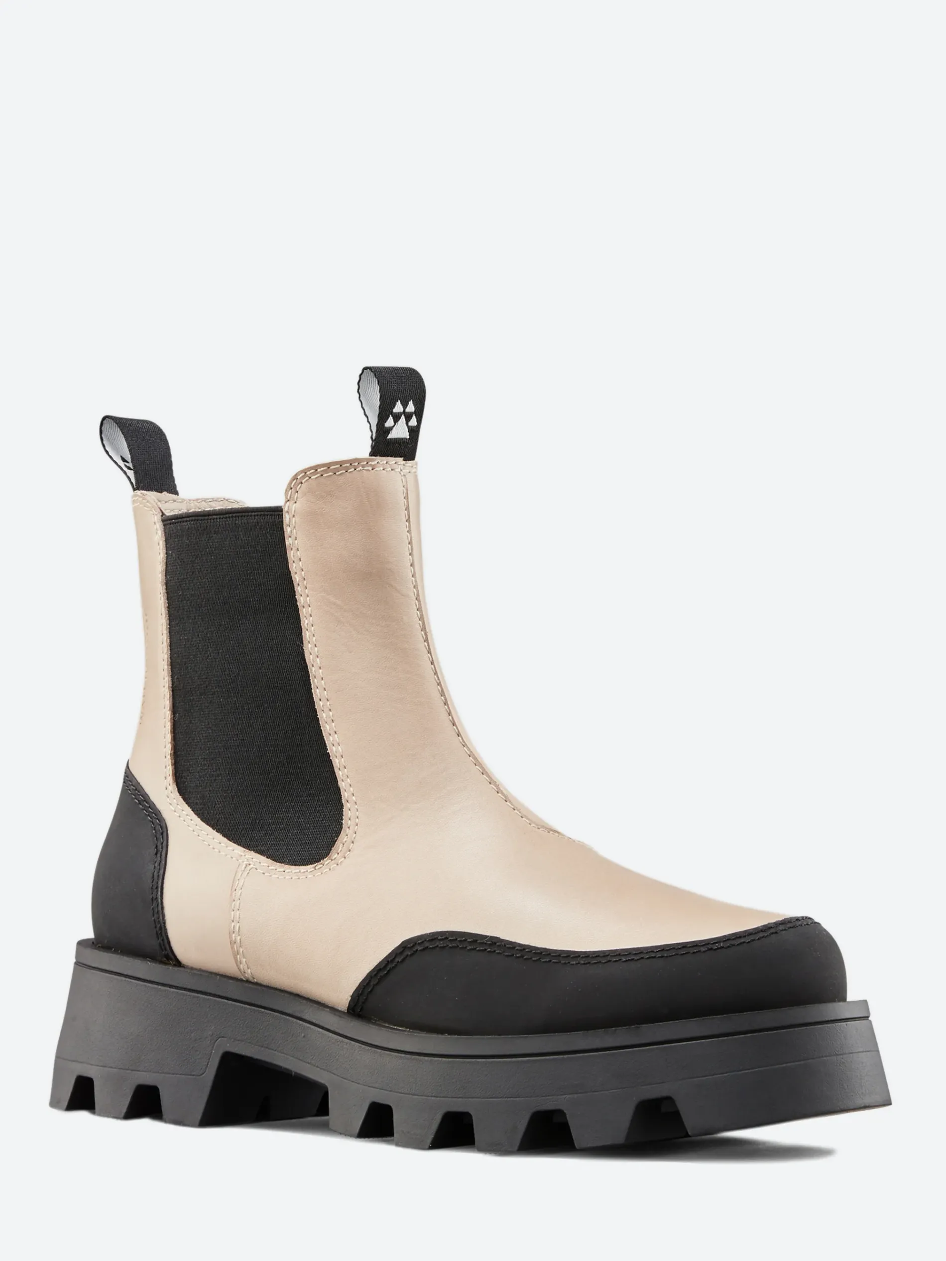 Cougar mid-height pull-on leather and rubber boot sits on a thermoplastic rubber outsole with 2-inch heel.