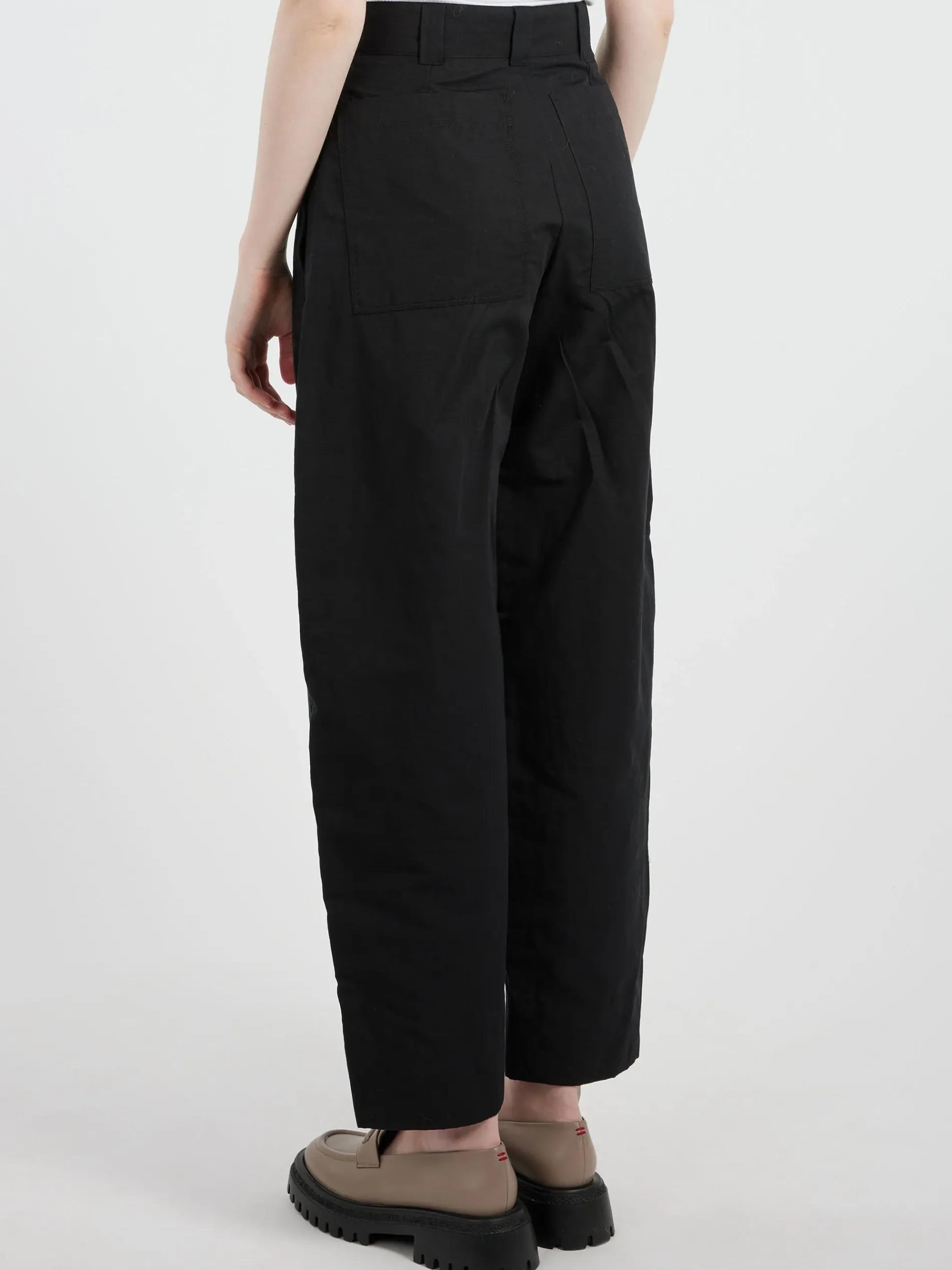 Soeur Alouette high-waisted pants in an irregular linen cotton fabric with a slightly rounded volume.