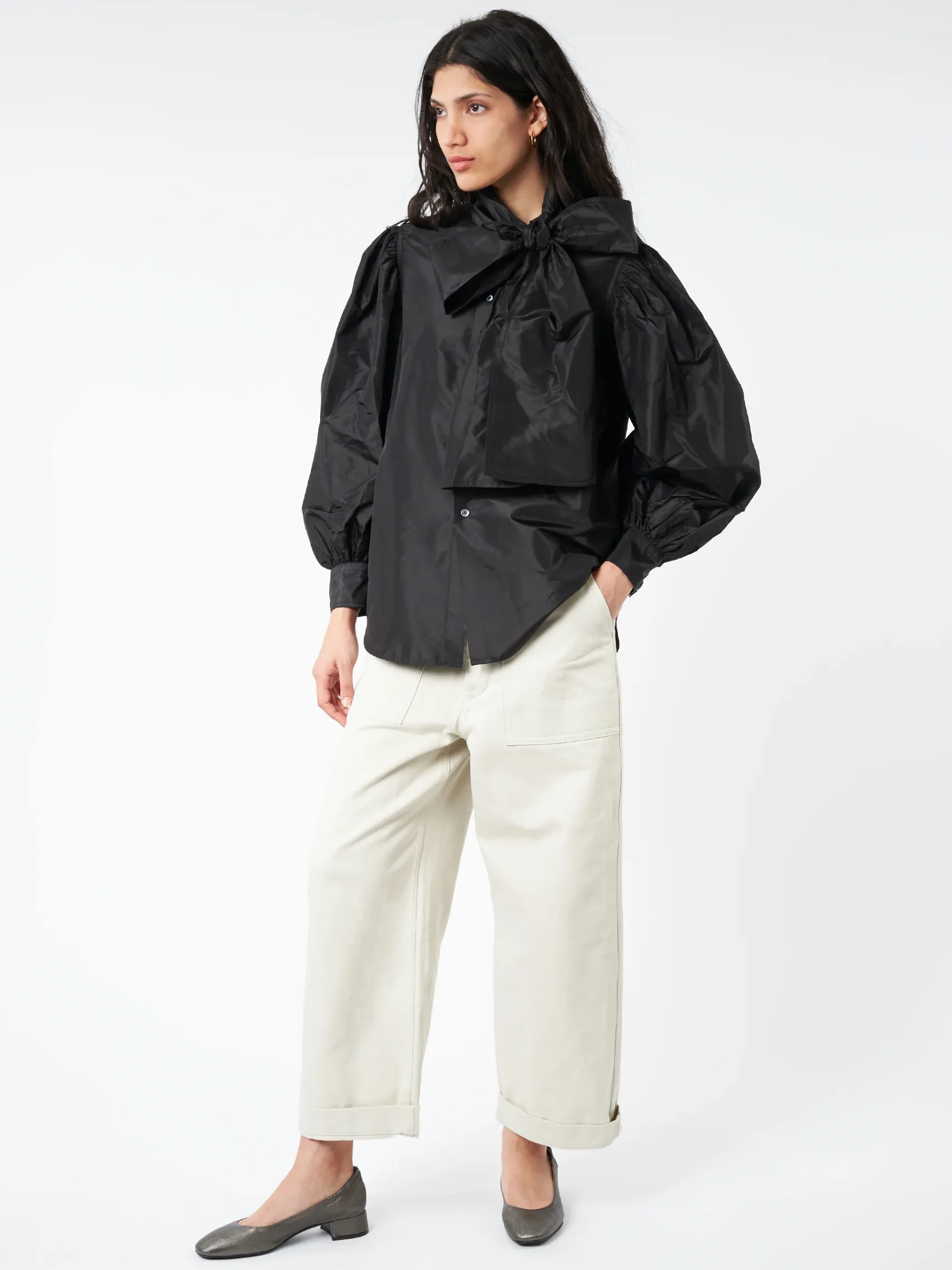 Sofie D’Hoore oversized button-up in a silk taffeta with an oversized neck bow.