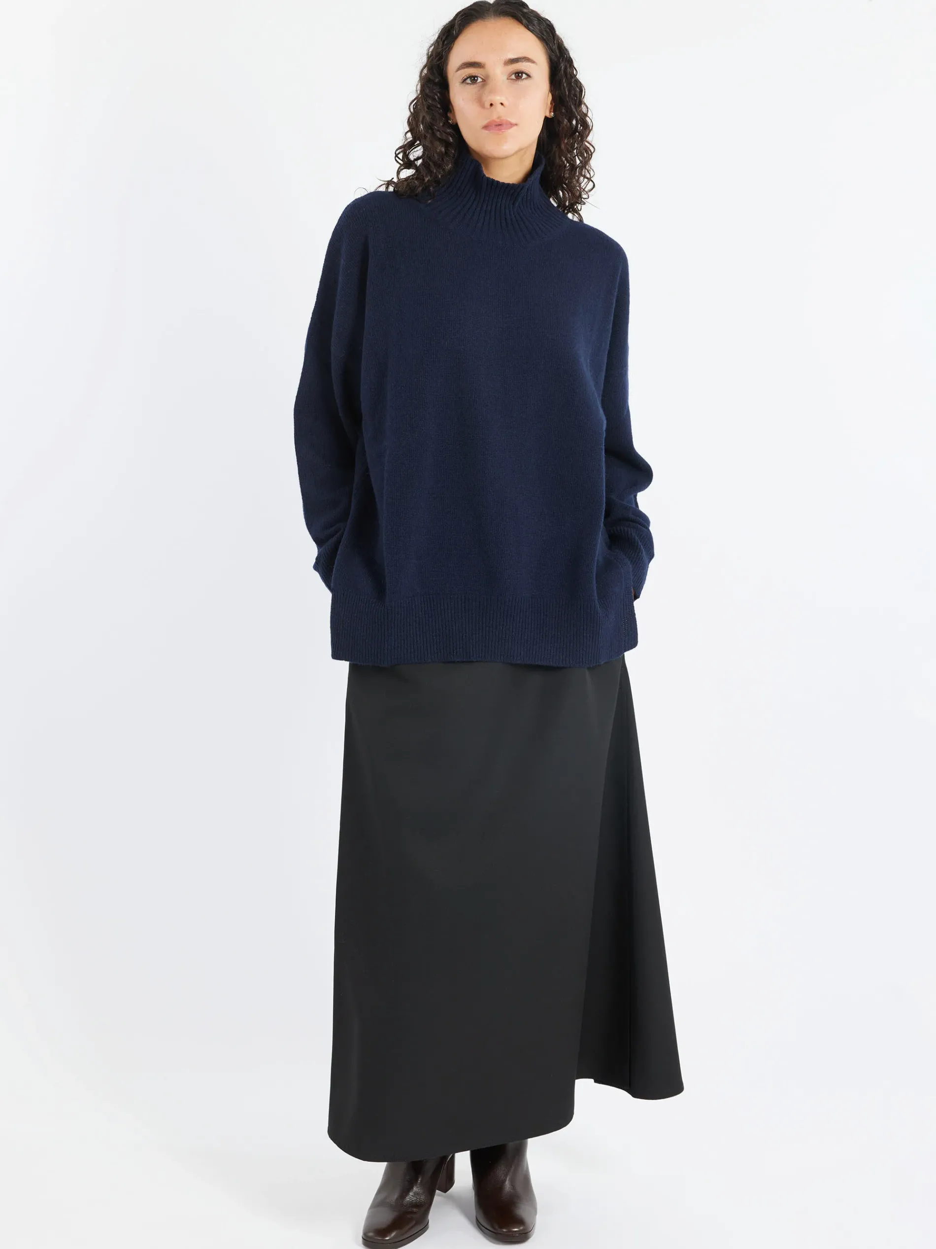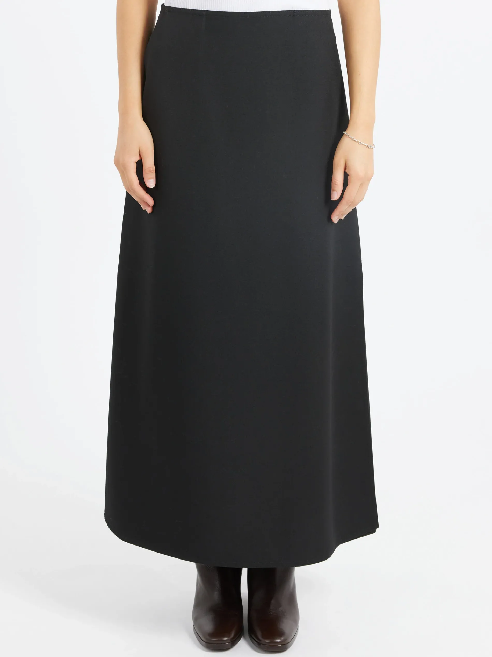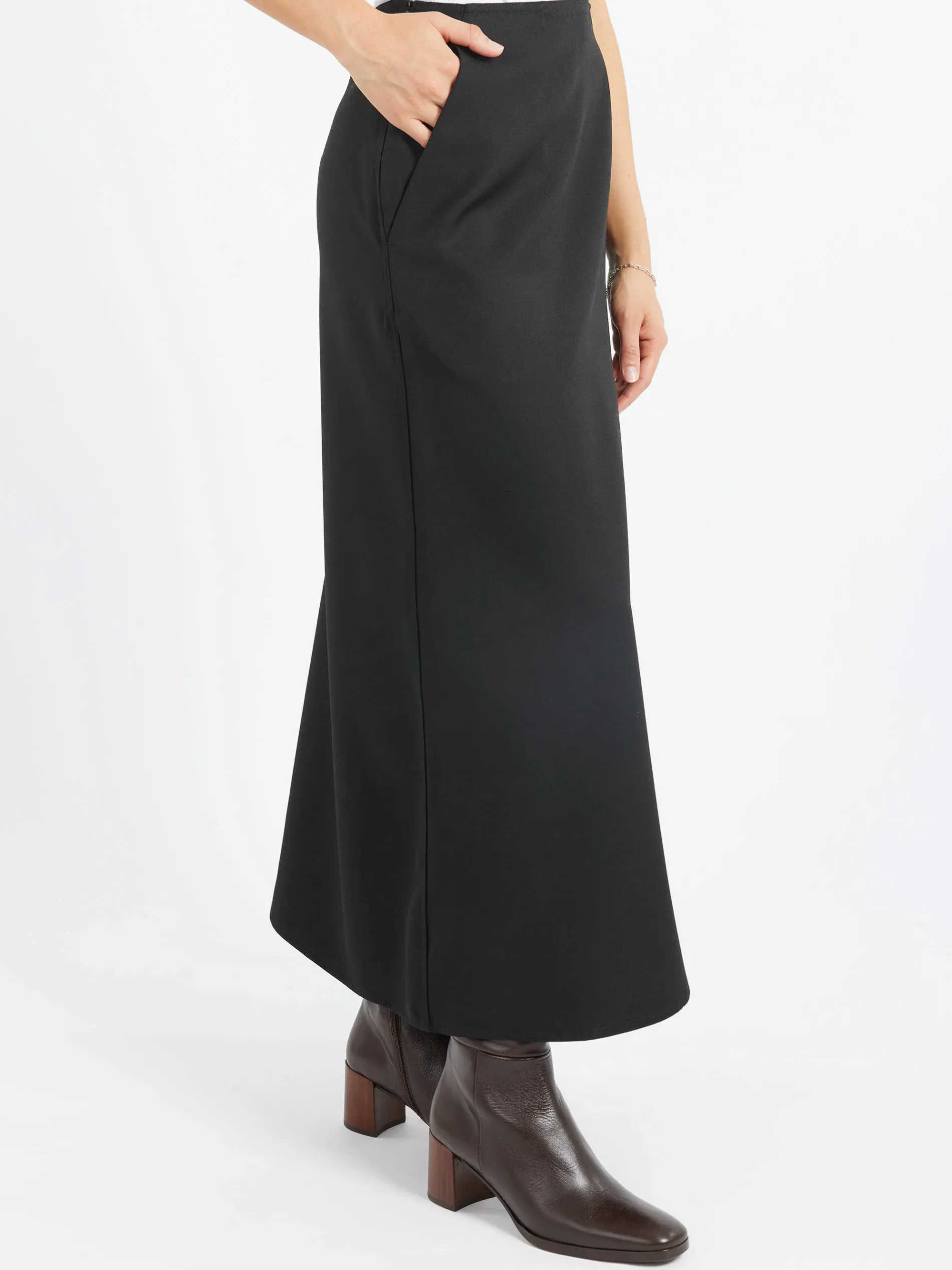 Wool skirt made in a tropical twill with wrap detail side split and pockets on both sides.