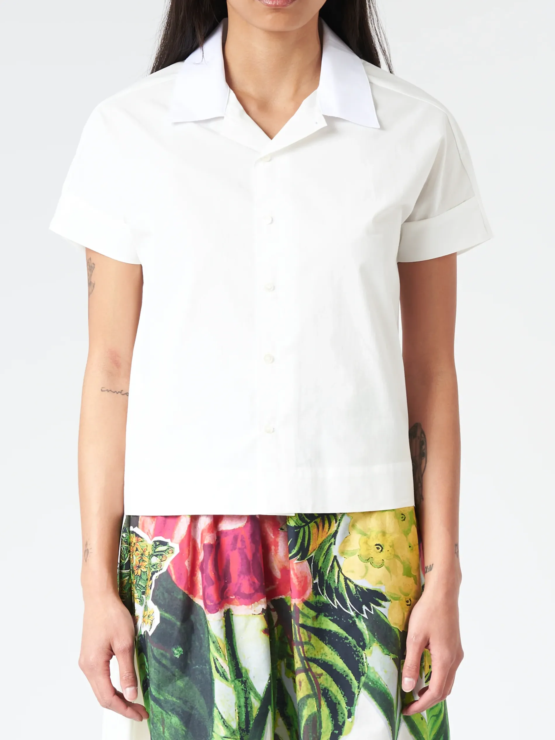 Cotton poplin blouse with cap sleeves, finished with a wide cuff.