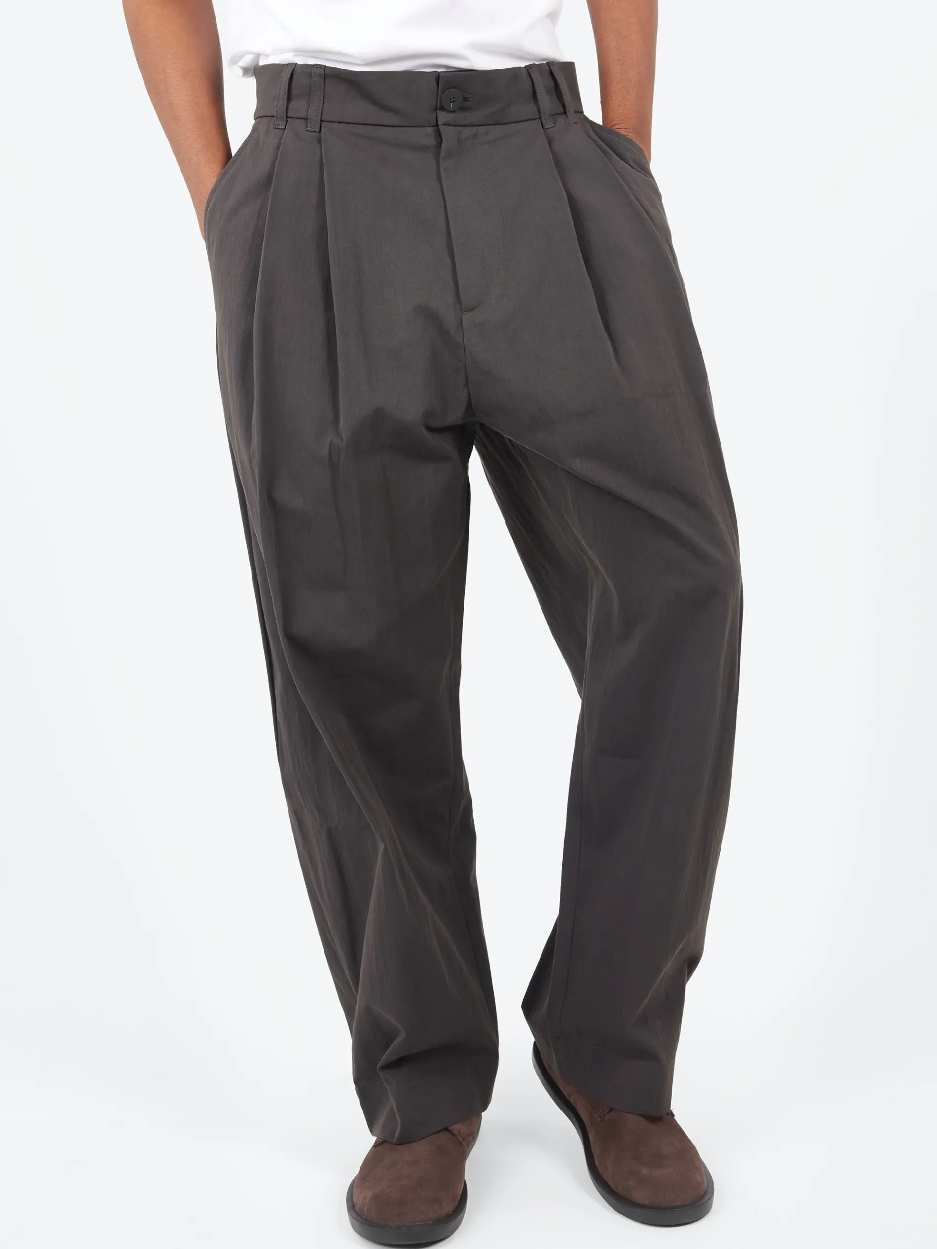 Double-pleated, with a full cut and plenty of drape, the Yale pants have a certain laidback sophistication. This mid-waisted volume-leg staple is constructed from a premium Italian technical cotton that’s woven in a tight twill and lightly textured.