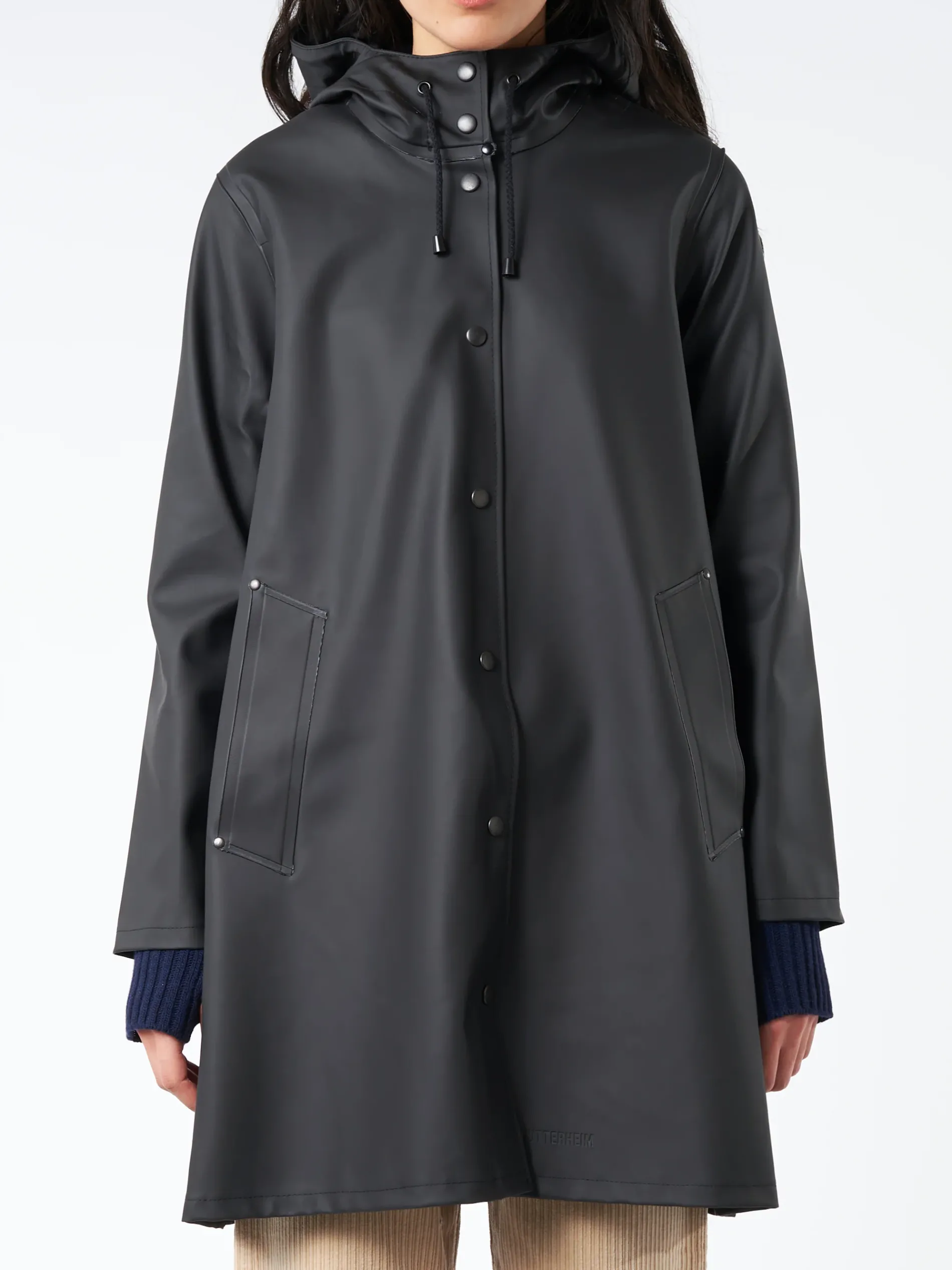 The Stutterheim Mosebacke is an artisanally made A-line-shaped raincoat for women. The sturdy and hard-wearing waterproof fabric is tailored with double-welded seams, making it impossible for any moisture to seep through.