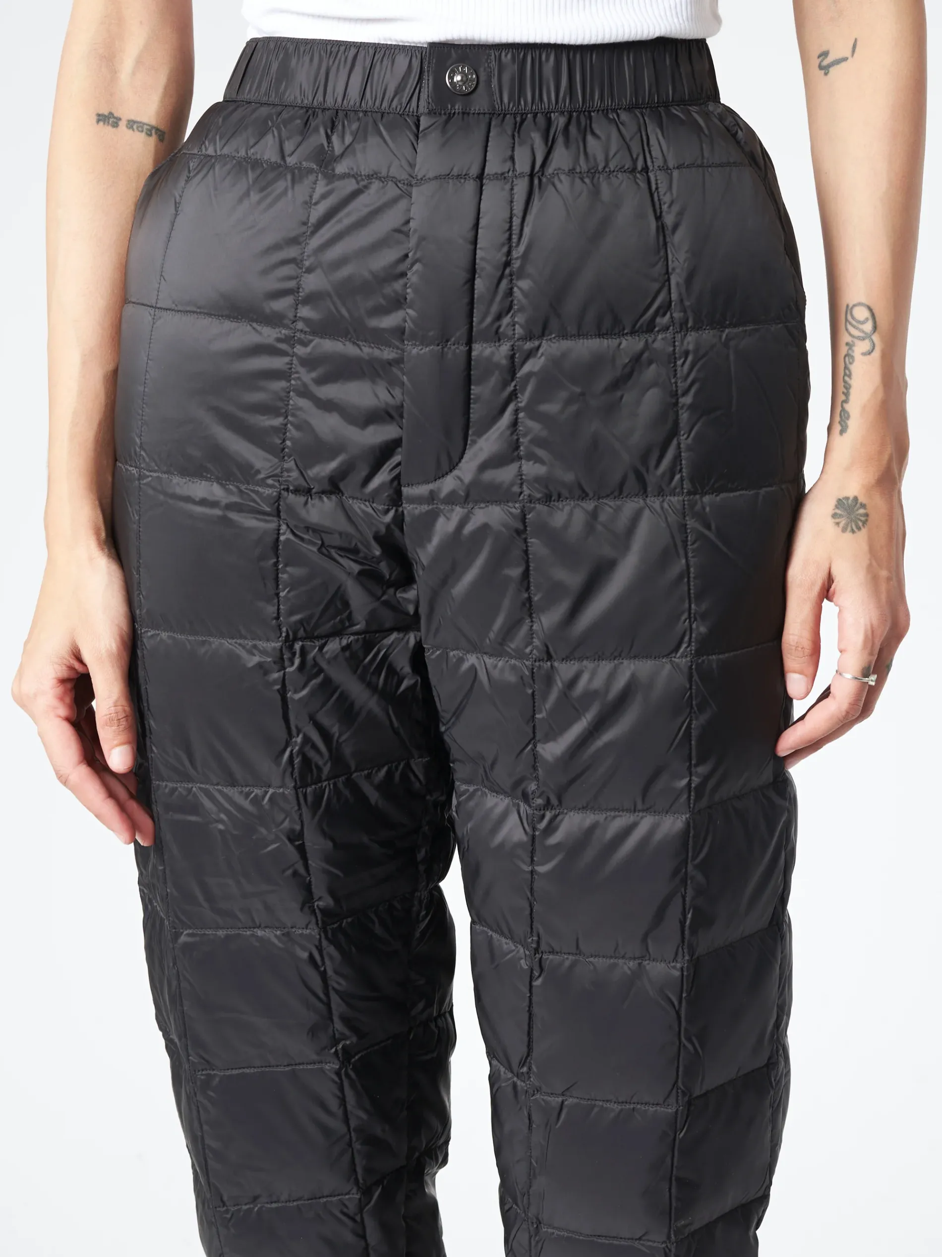 Lightweight and warm, and have an elastic waistband and drawstrings for easy wear. These TAION tapered down pants are made with high quality 800 fill power down.