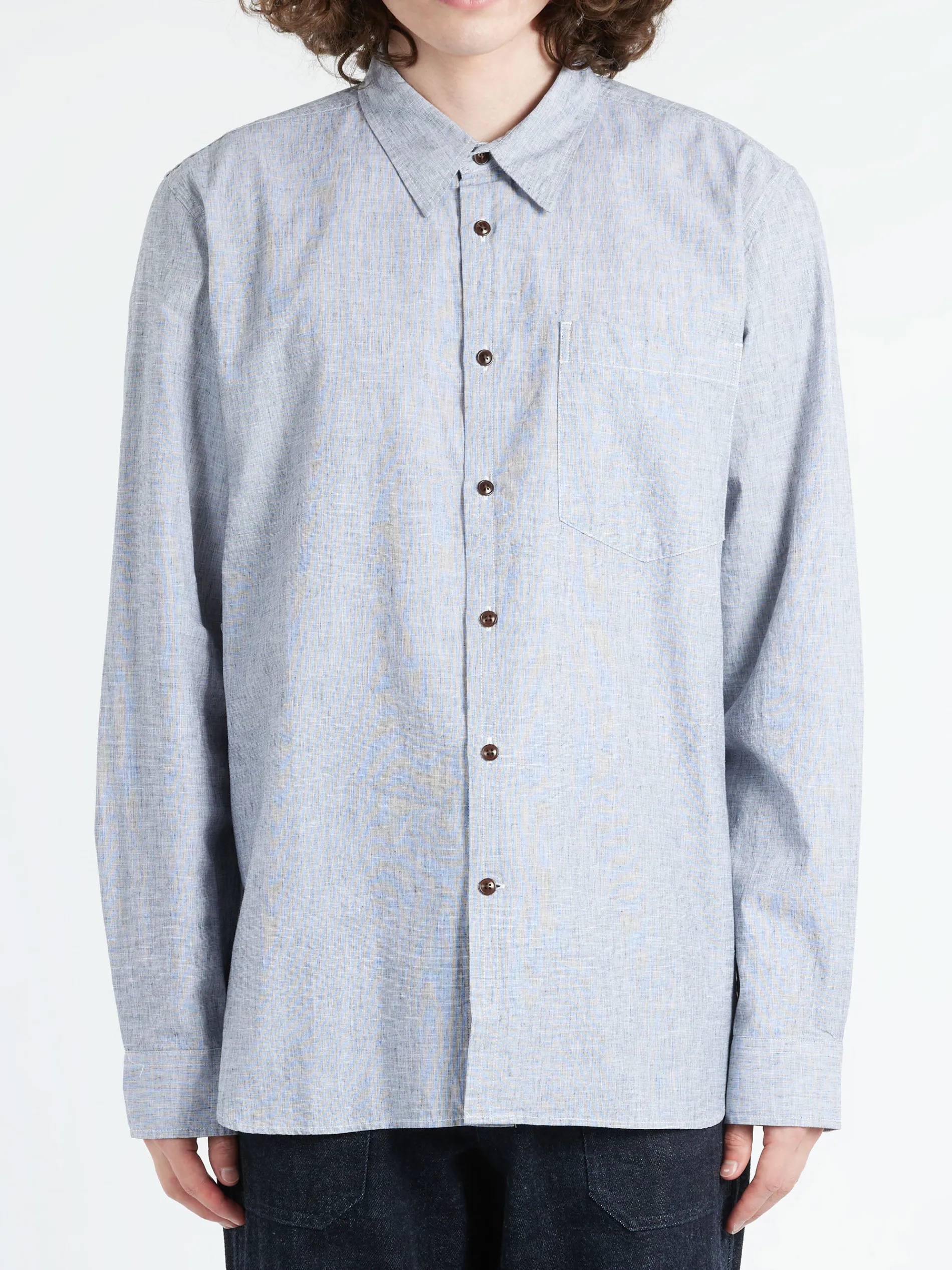 TOAST shirt is crafted from cotton blended with linen which is soft to the touch. Shaped with a neat point collar and features a chest patch pocket finished with stitch detailing.