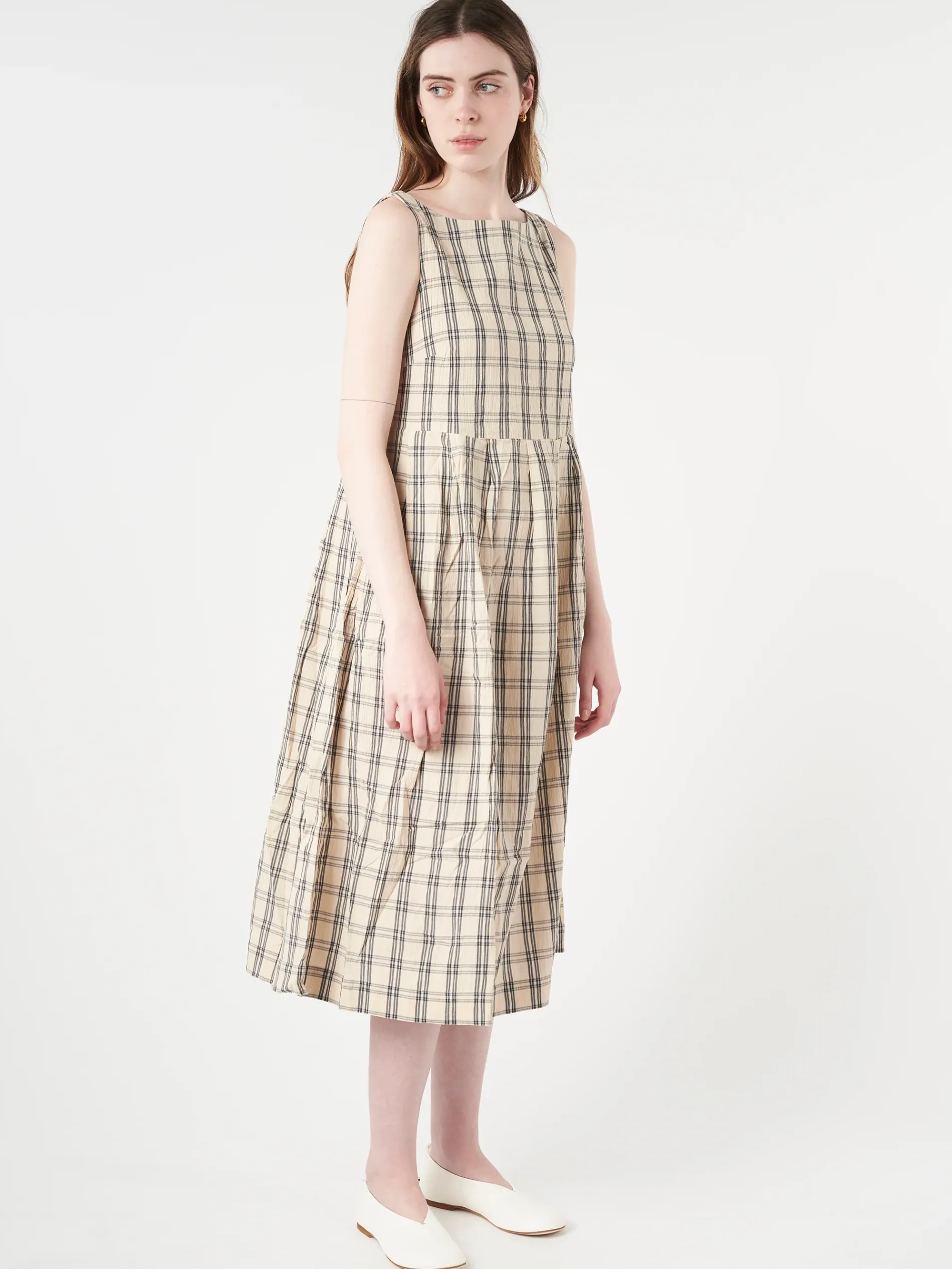 Crinkled Iku checked cotton complements the easy design of this TOAST dress. A pleated waist creates a swingy, effortless shape.