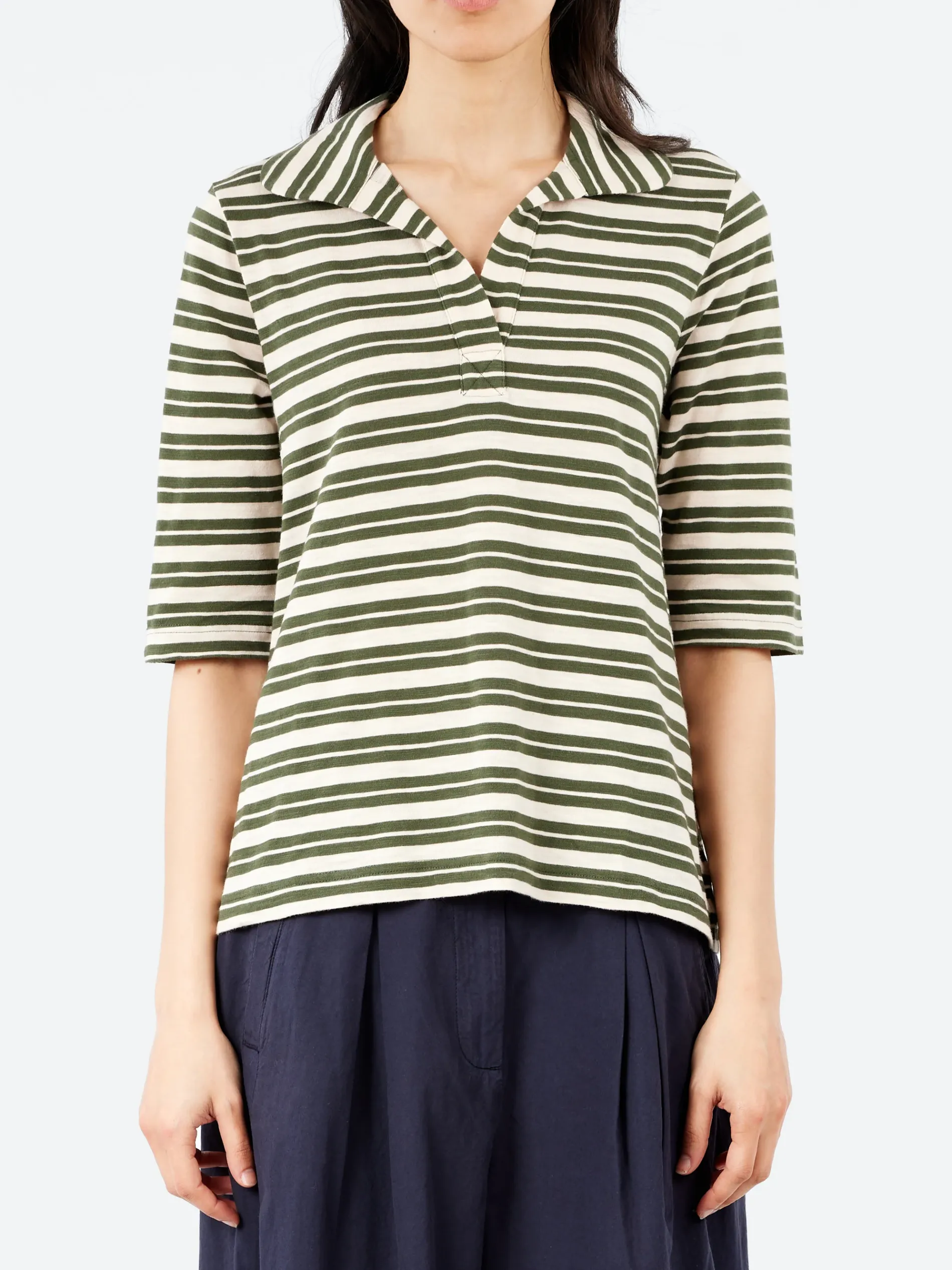 TOAST tee features a rounded open collar, complementing the nautical inflection of the stripes. Crafted in Portugal from slubbed organic cotton jersey to a regular shape with elbow-length sleeves, falling to a mid-hip length.