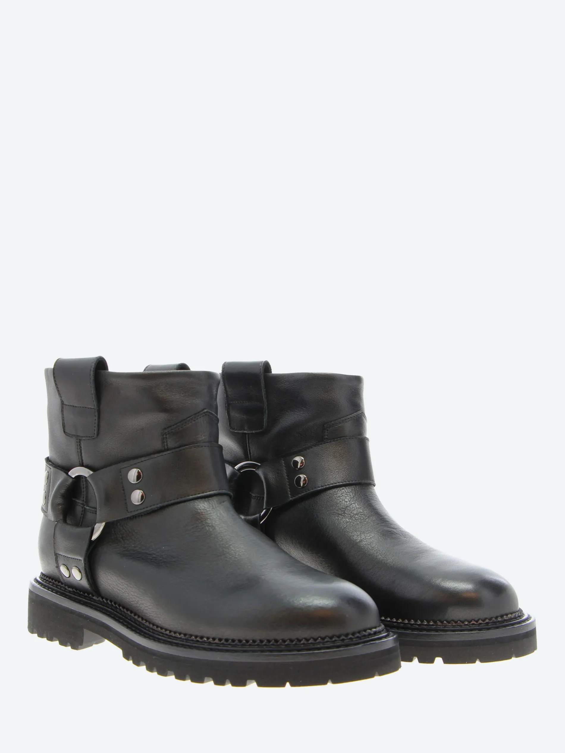TOu0026amp;CO. short engineer boot with harness detailing, polished hardware and a shapely round toe.