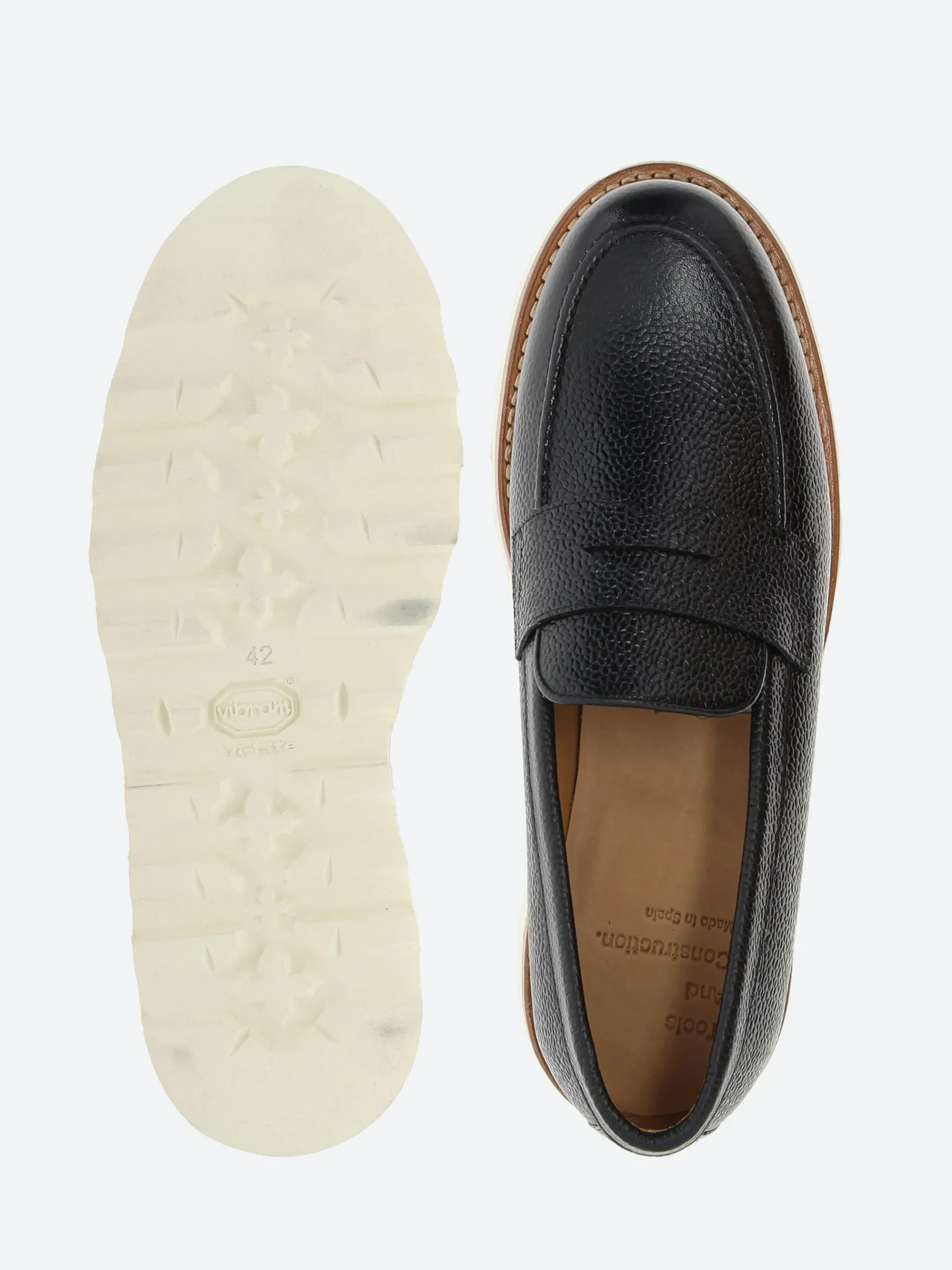 Tools and Construction Dexter loafer with a classic penny keeper, sits on a storm welt Vibram sole.