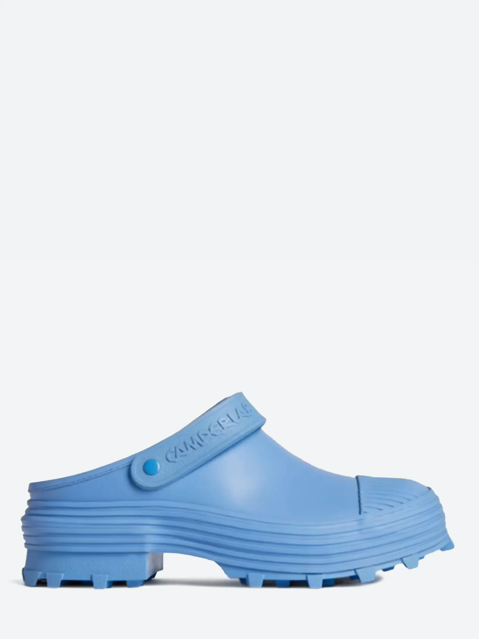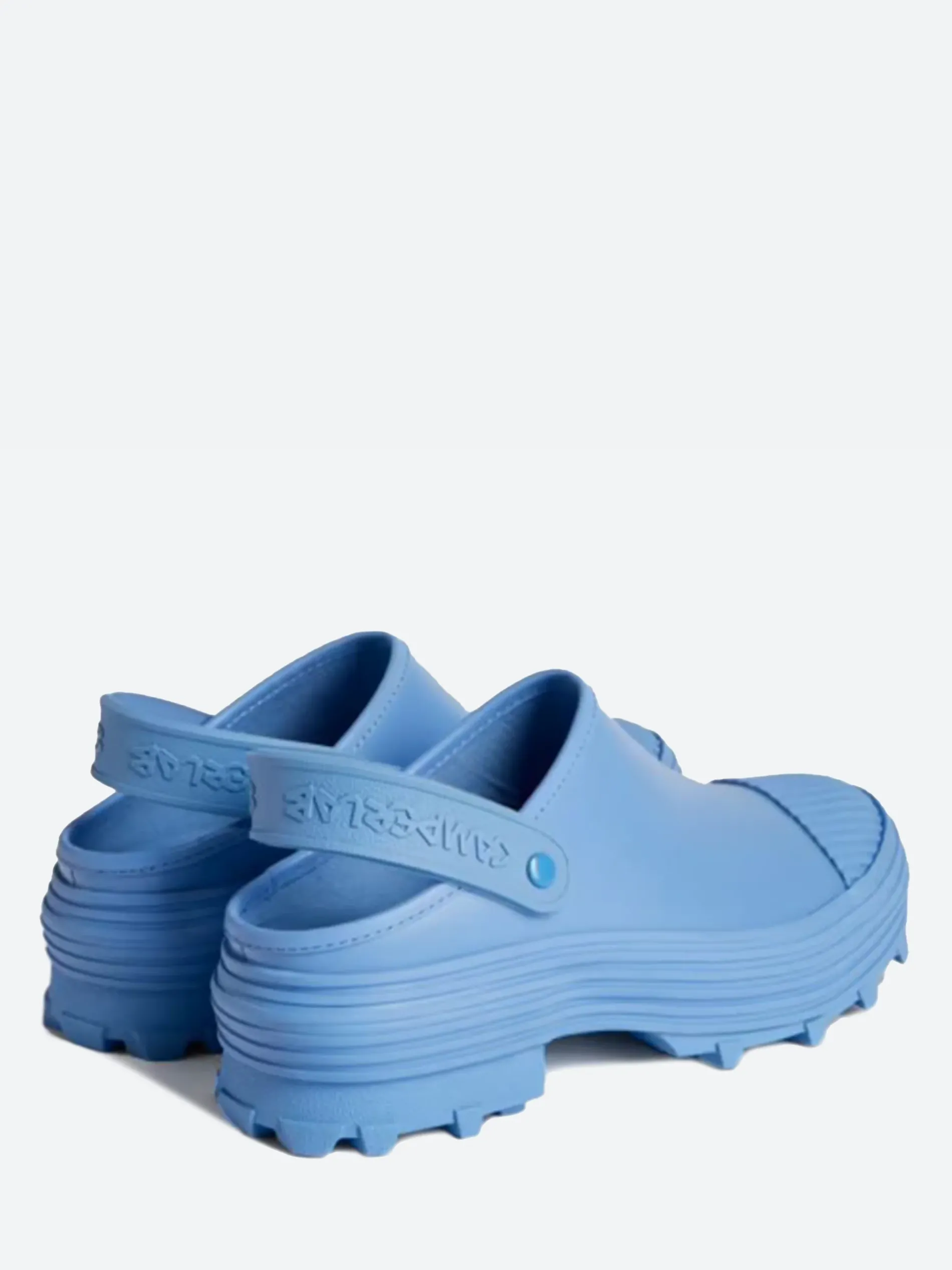CamperLAB vulcanized leather clogs with slingback straps and toothed rubber outsoles.