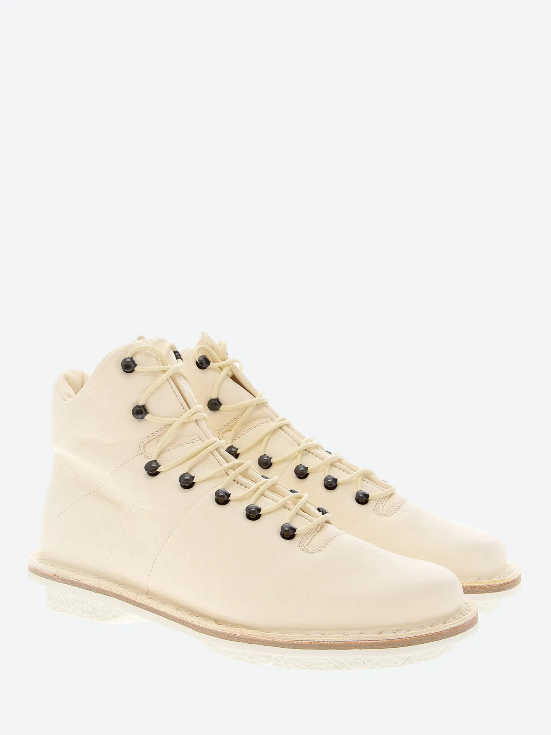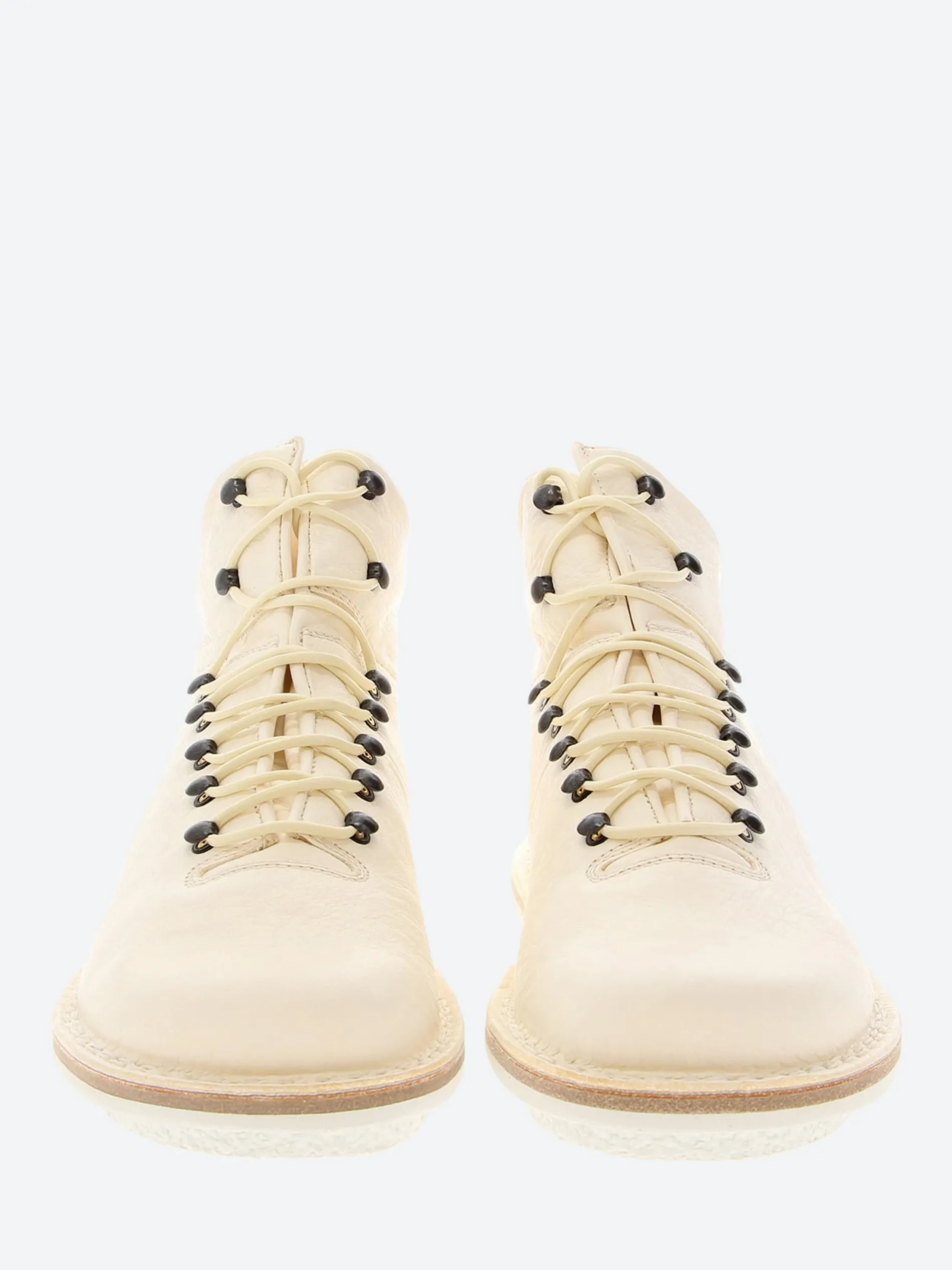 Trippen lace-up boot featuring hooks and eyes in the style of classic mountain boots.