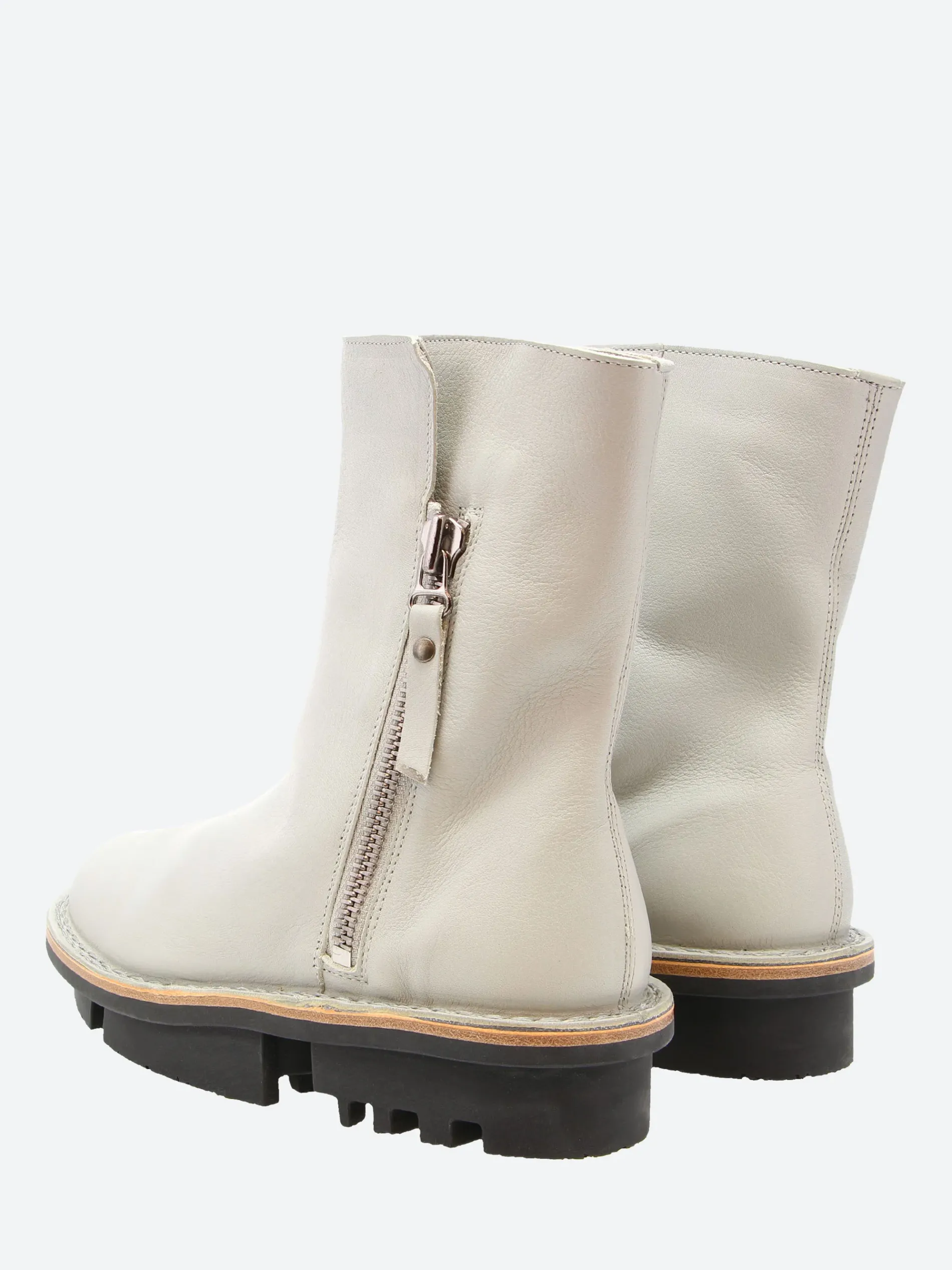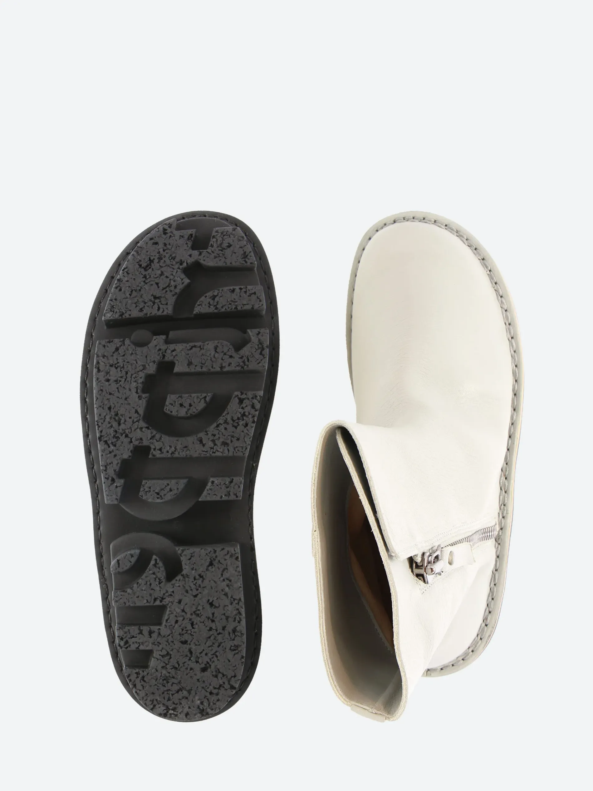 Trippen ankle boot with exterior metal zip fastening. Thanks to the large underlay and leather lining, the upper can be turned decoratively inside out at the top.