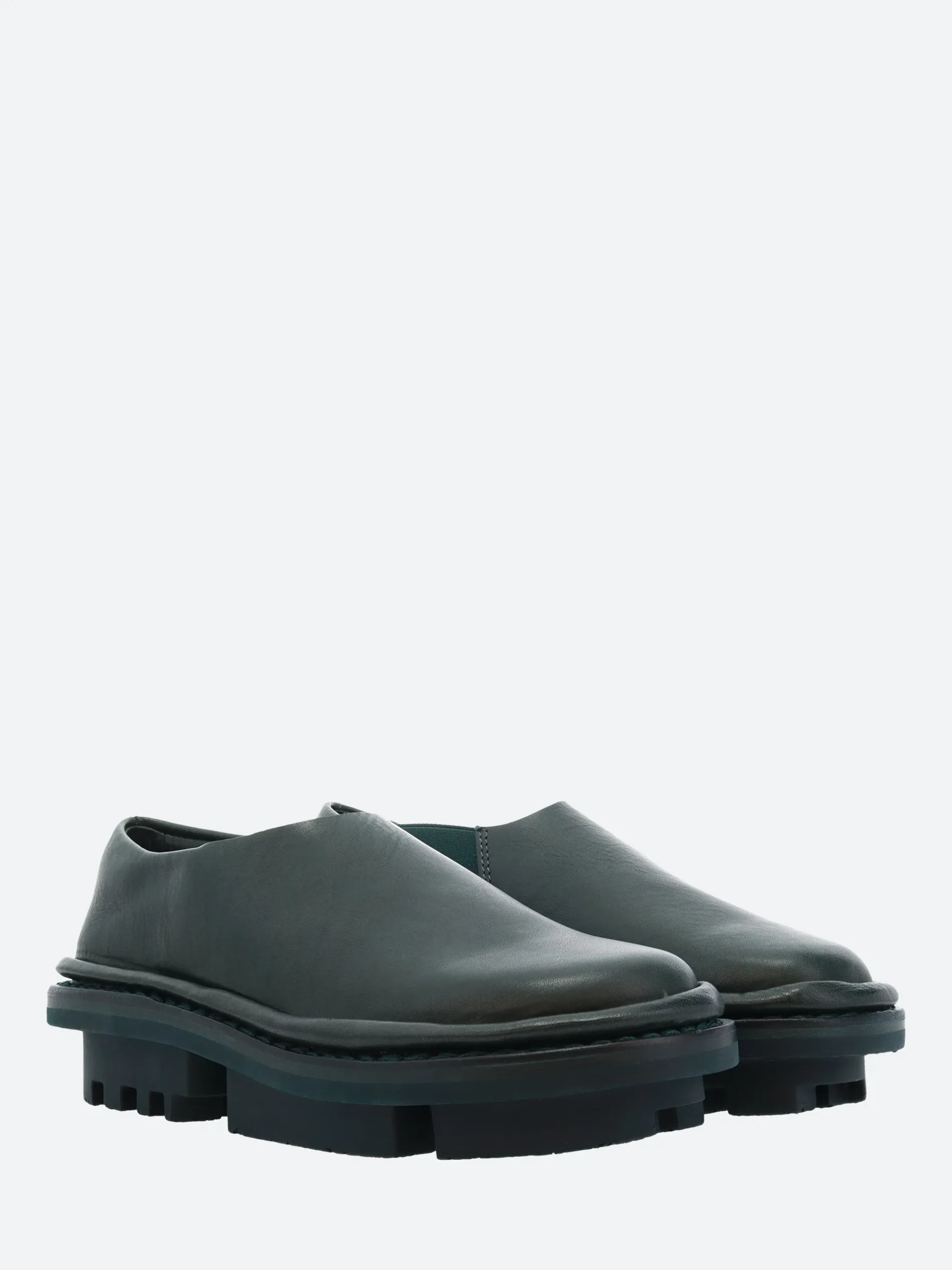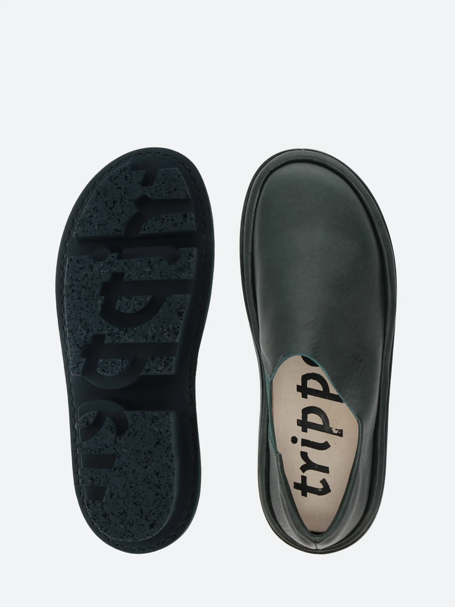 The classic Trippen slip-on style receives a makeover with the wide leather tube around the edge.