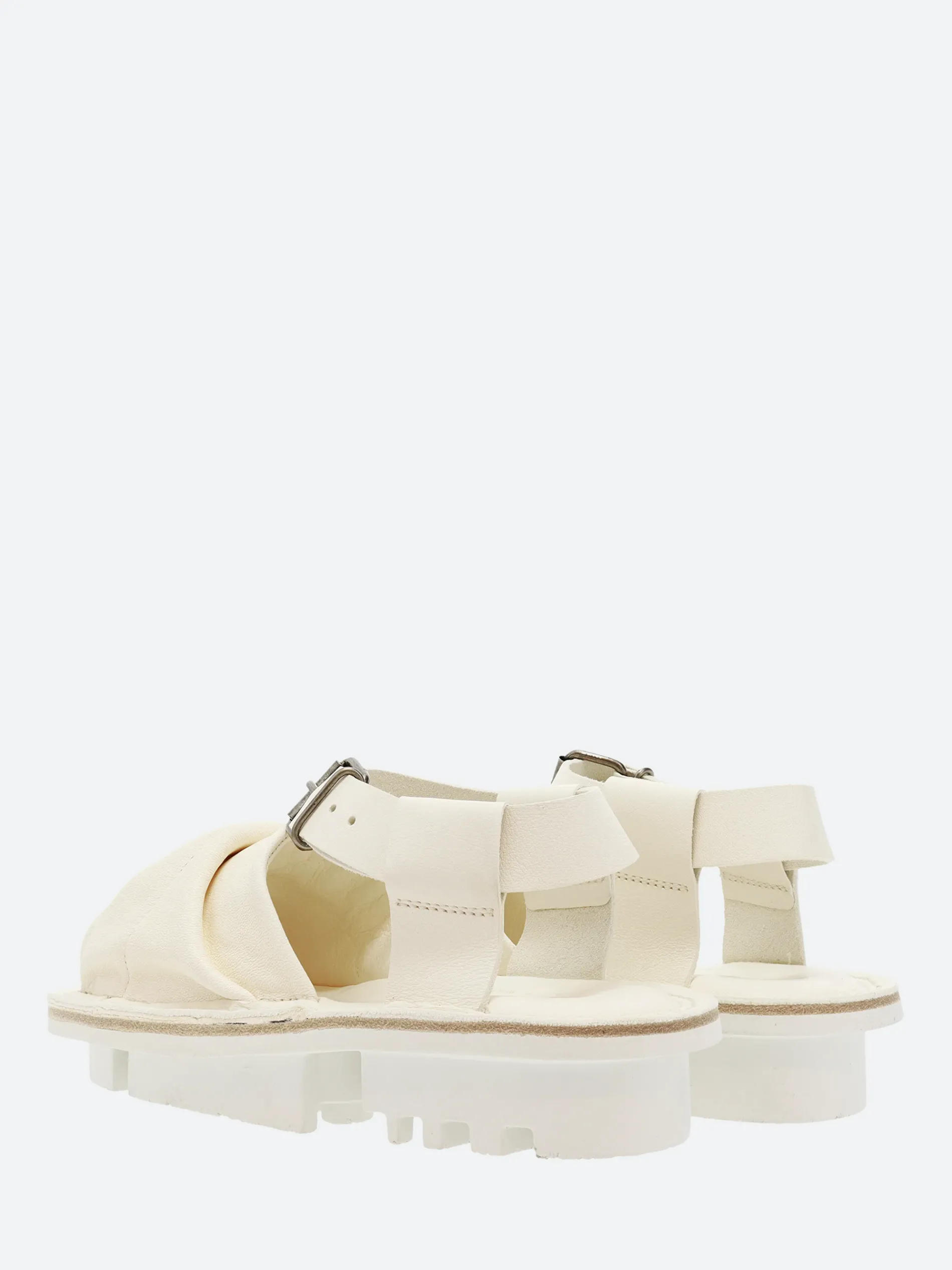 Trippen Closed Surplus minimalist slip-on mule with an adjustable buckle ankle strap.
