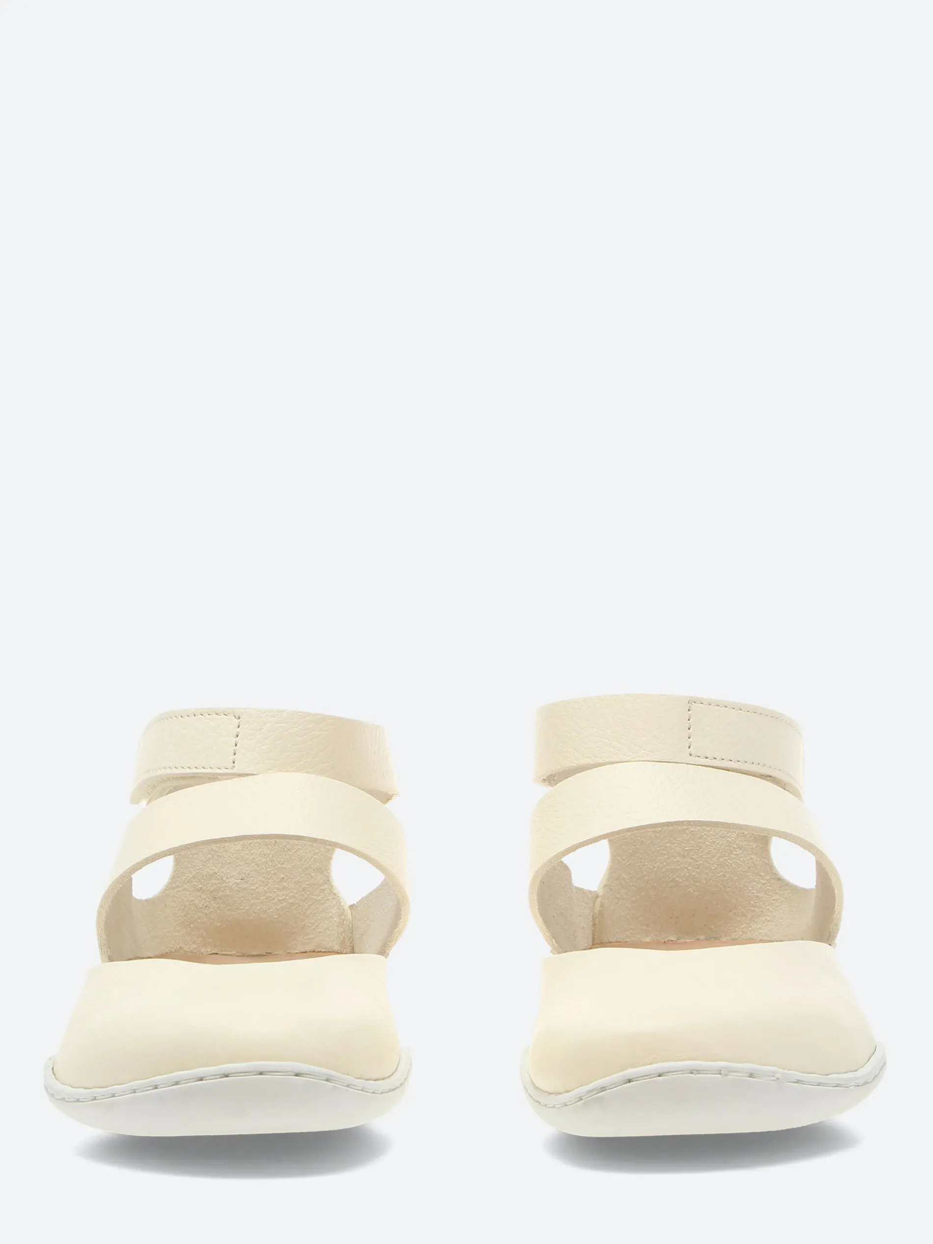 Low cut ballerina. While the front strap sits loose on the instep, the second strap has a Velcro fastening.