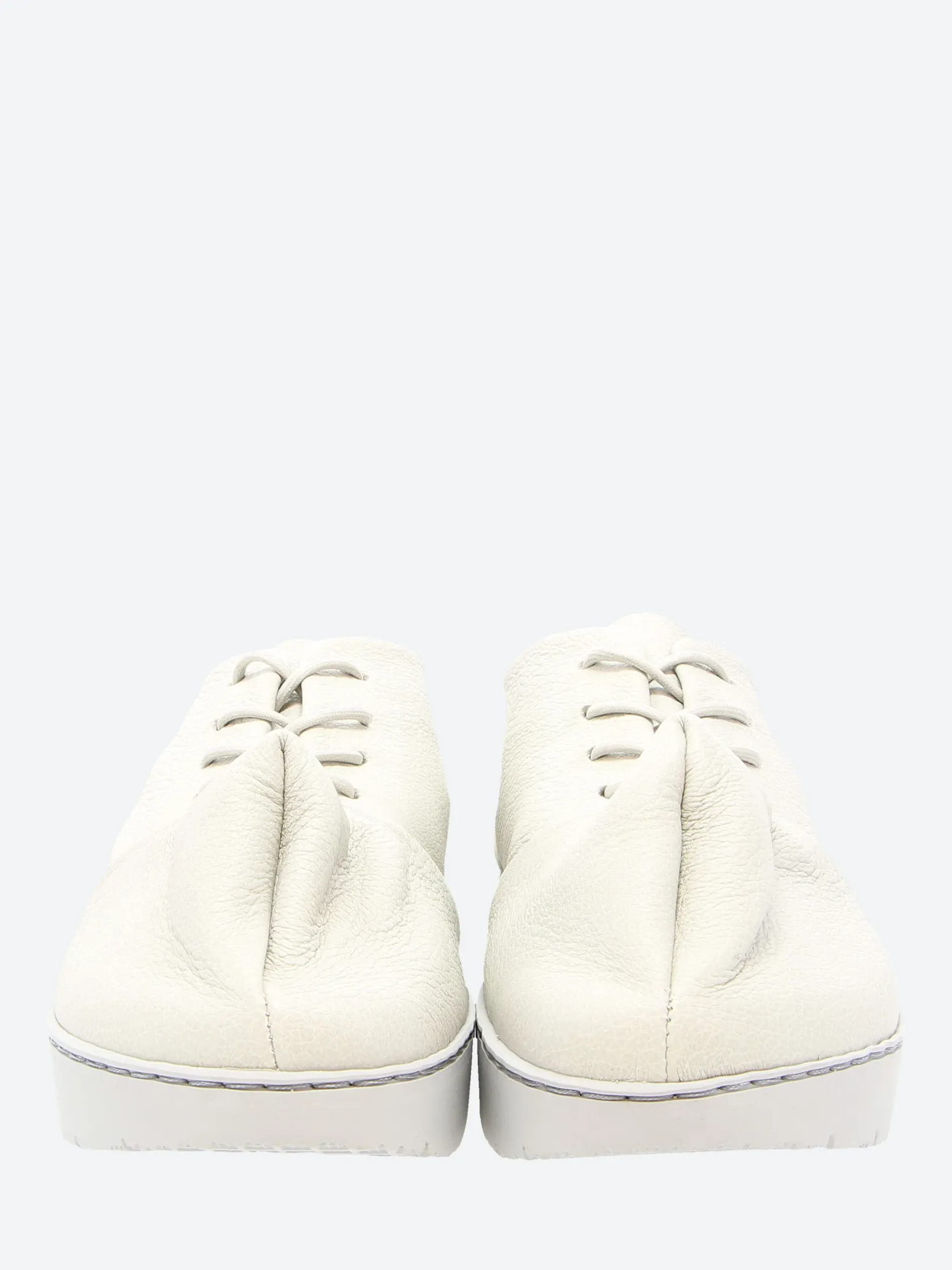 Trippen Haze lace-up shoe crafted from white leather. The upper acquires its form through the crease at the toe box.