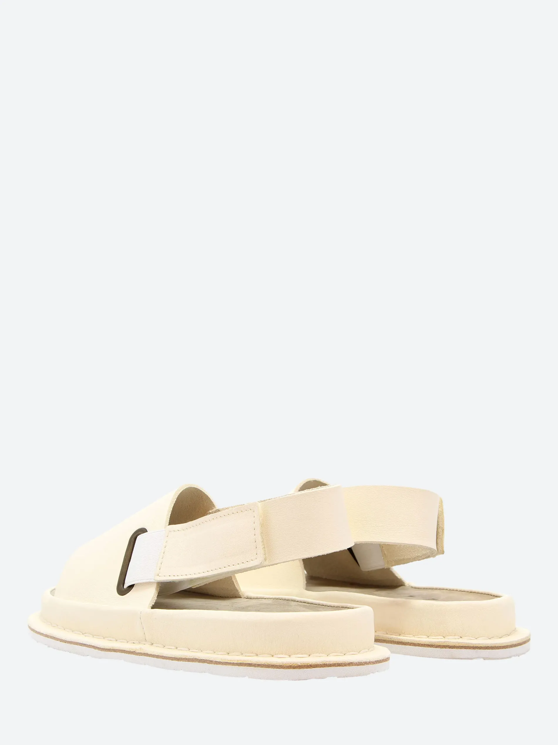 Trippen Zori Safeguard, a simple sandal with an elastic heel strap that passes through an eyelet and a Velcro strap closure.