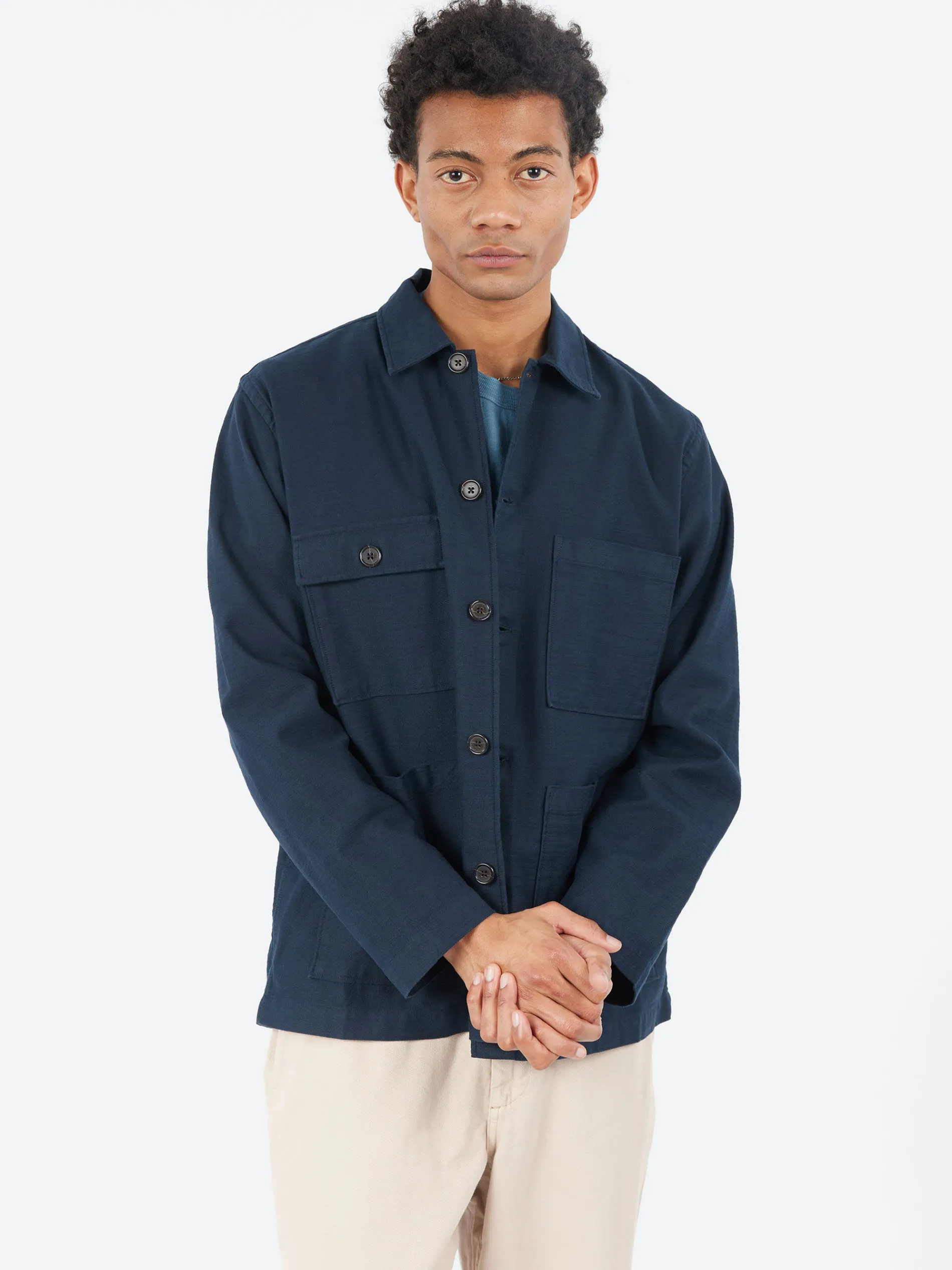 The Universal Works Dockside Jacket combines practicality and functionality with its unstructured design. It features a back yoke with pleats for added movement and shape, while the four front pockets are inspired by military fatigue styles. The jacket’s relaxed fit and thoughtful detailing make it an ideal choice for both everyday wear and more rugged tasks.
