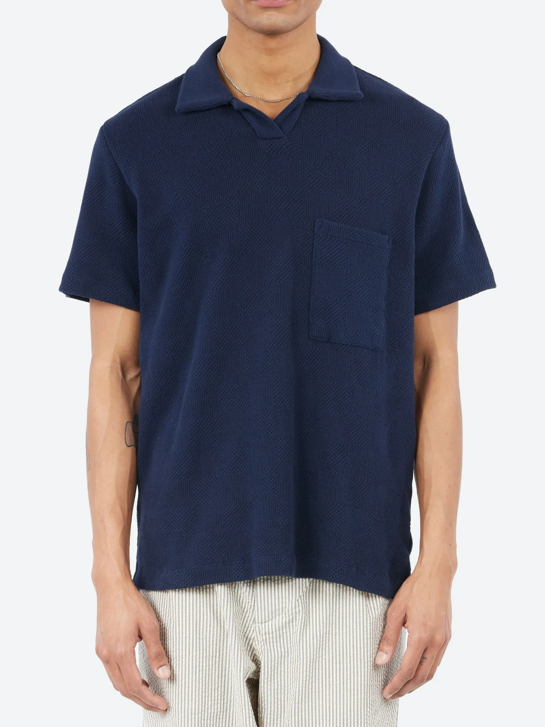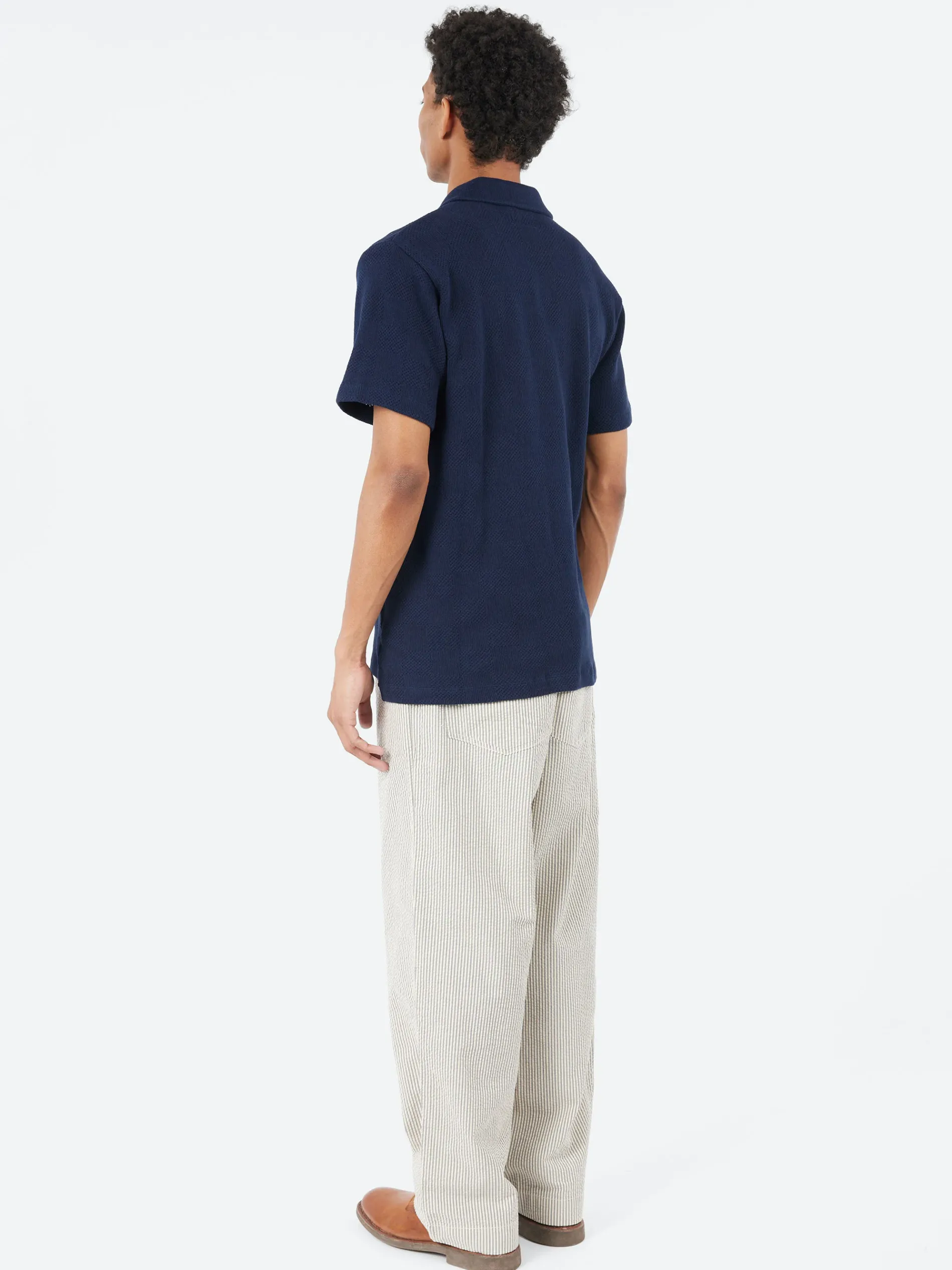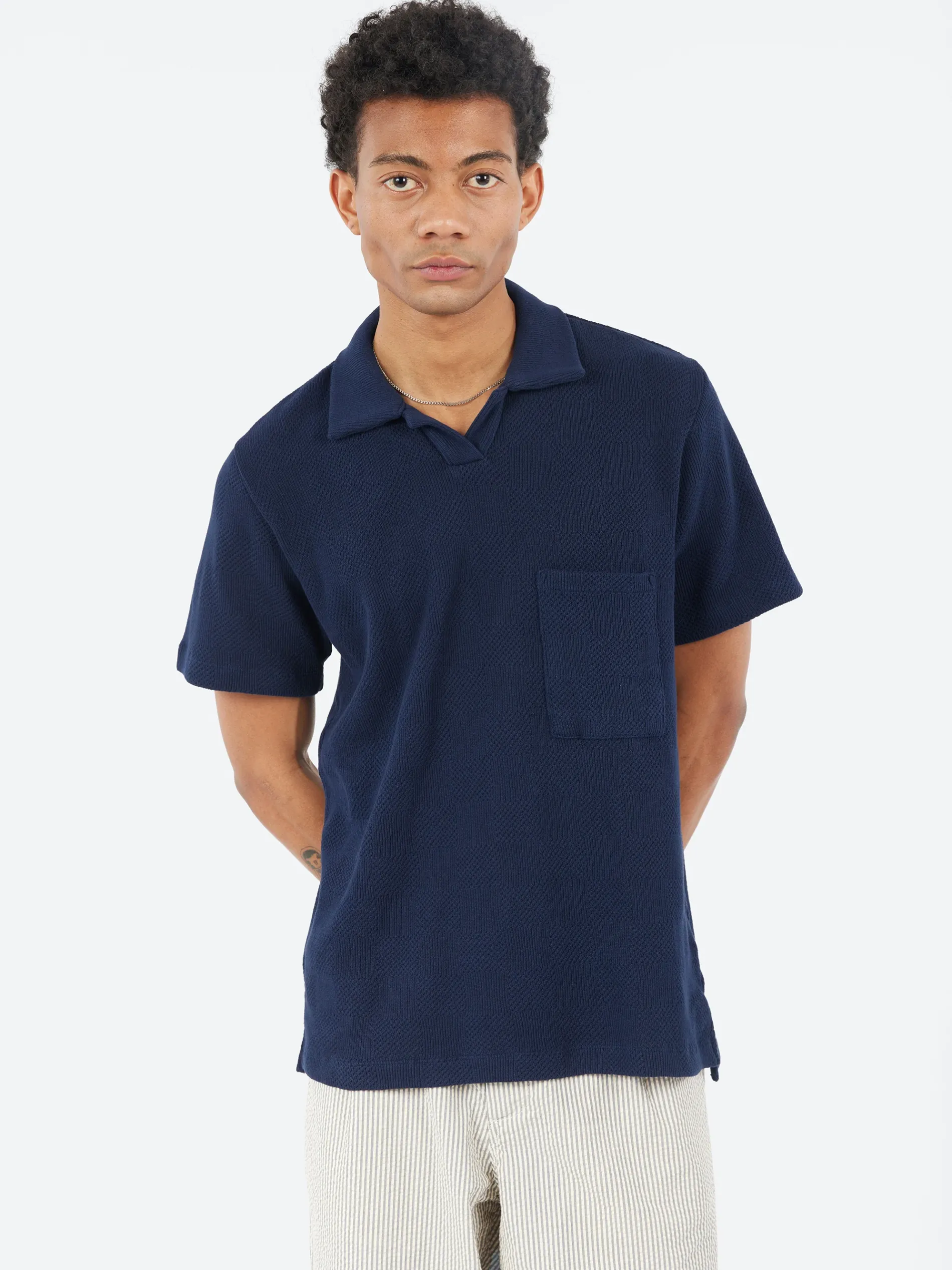 The Vacation Polo is a versatile style, in a regular fit with a split hem and dropped back. In the same fit as last season, it has no neck fastening and a short placket front, to be worn with an open neck for a relaxed, casual feel.