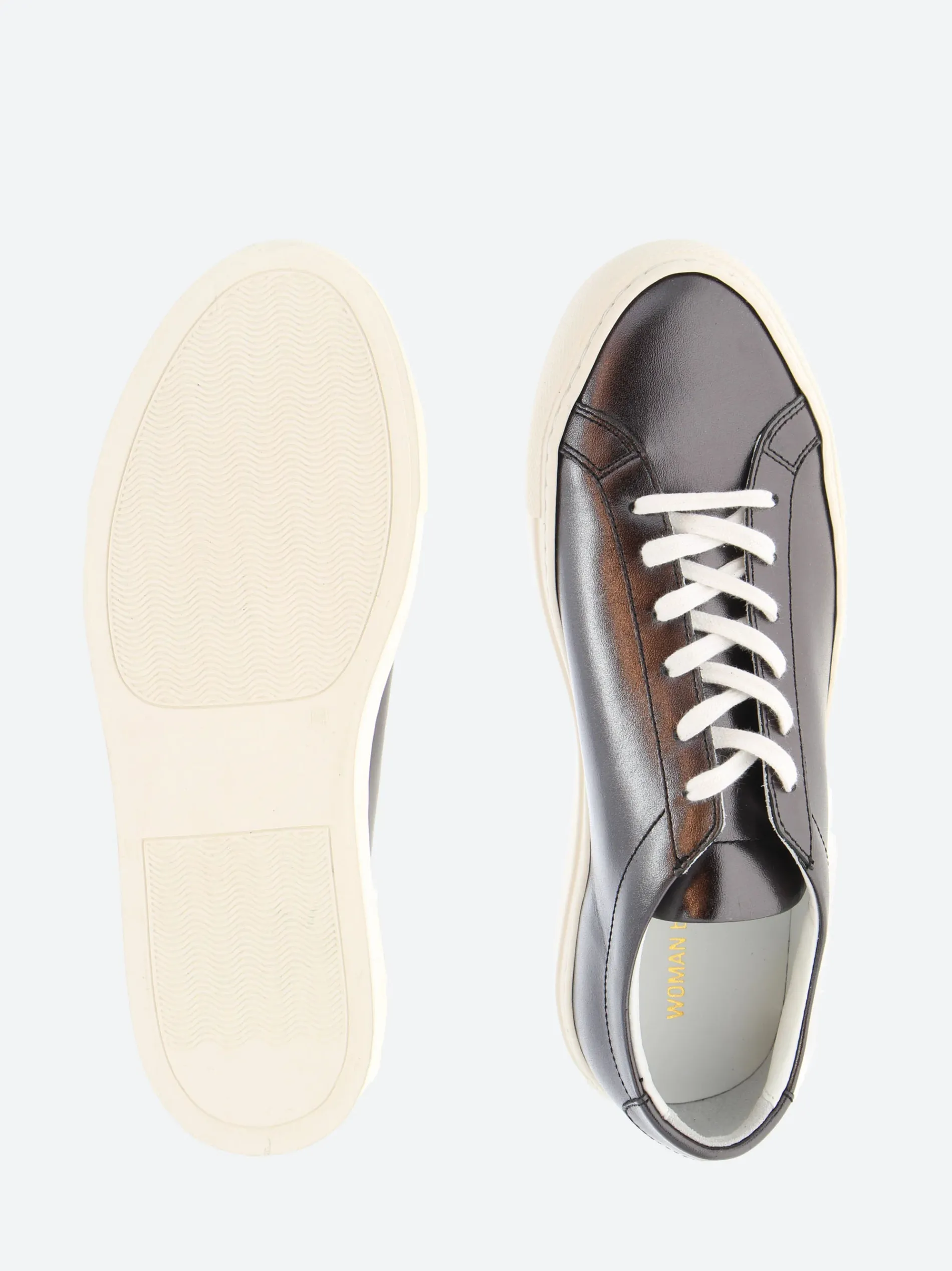 Woman by Common Projects Achilles Low is the original Common Project style. Using top grain leather for the upper and a full leather lining makes this a luxury Italian made sneaker. The clean lines and minimal gold branding make for a modern take on a classic tennis shoe.