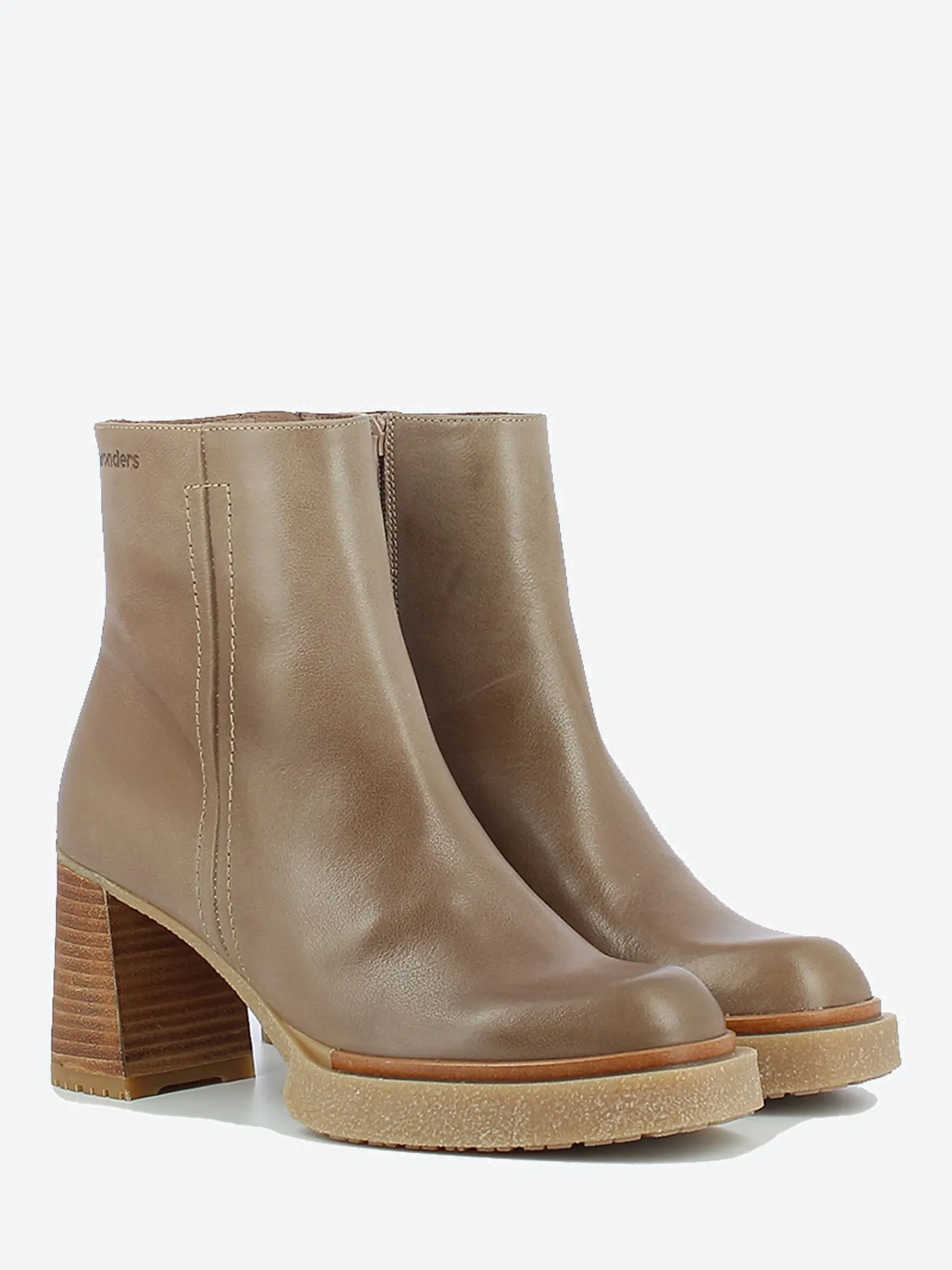Wonders high-heeled riding-style ankle boots. Leather upper with contrast stitching detail, side zip fastening, wooden block heel and a wonder Memory gel cushioned leather insole.