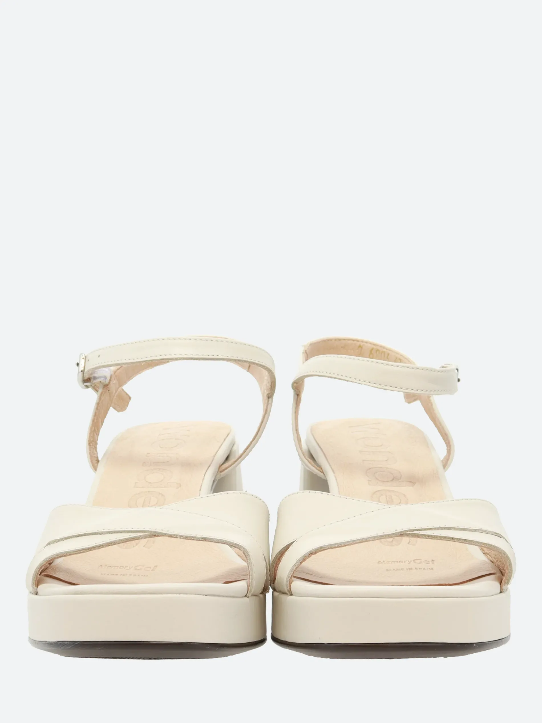 This dress sandal features a feminine design, with a strappy leather upper and ankle strap. It also boasts a comfortable flared block heel and platform for ease of wear.