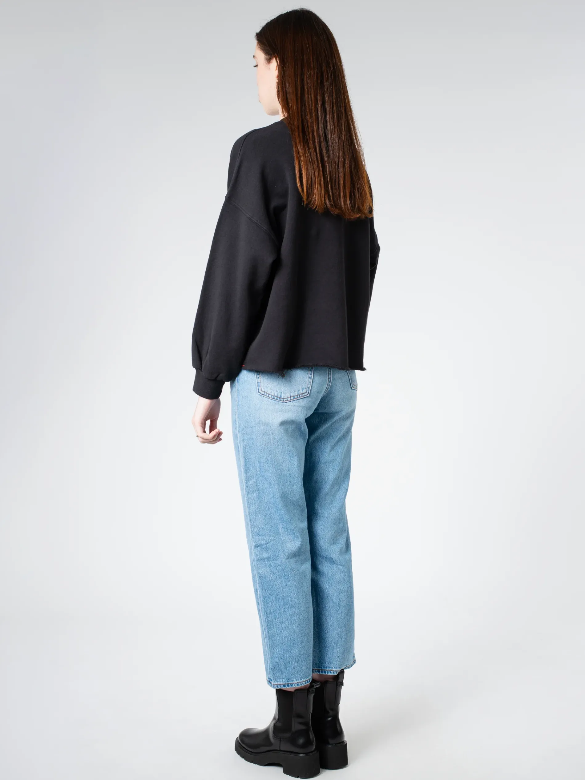 Xirena Honor with a slightly cropped raw hem done in ultra-soft brushed fleece. A sweatshirt ready for whatever the day brings.