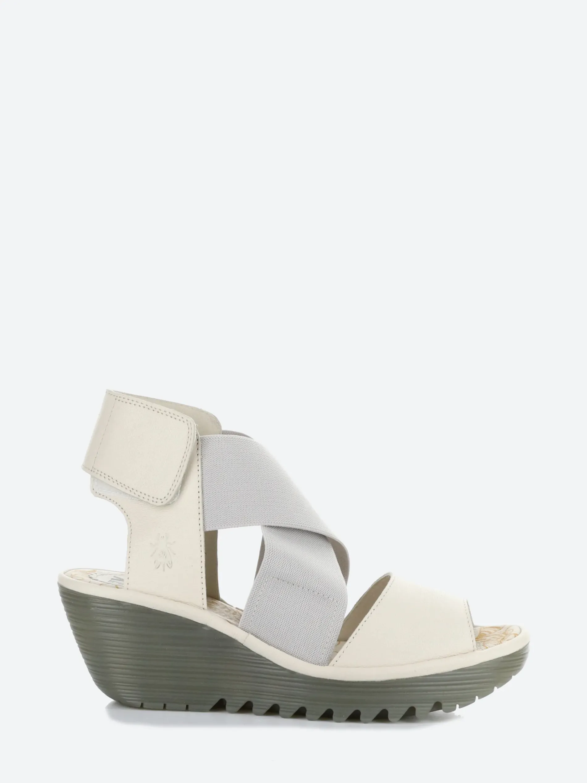 Fly London stylish cupido round toe sandals with wide elastic straps for an adjustable fit.